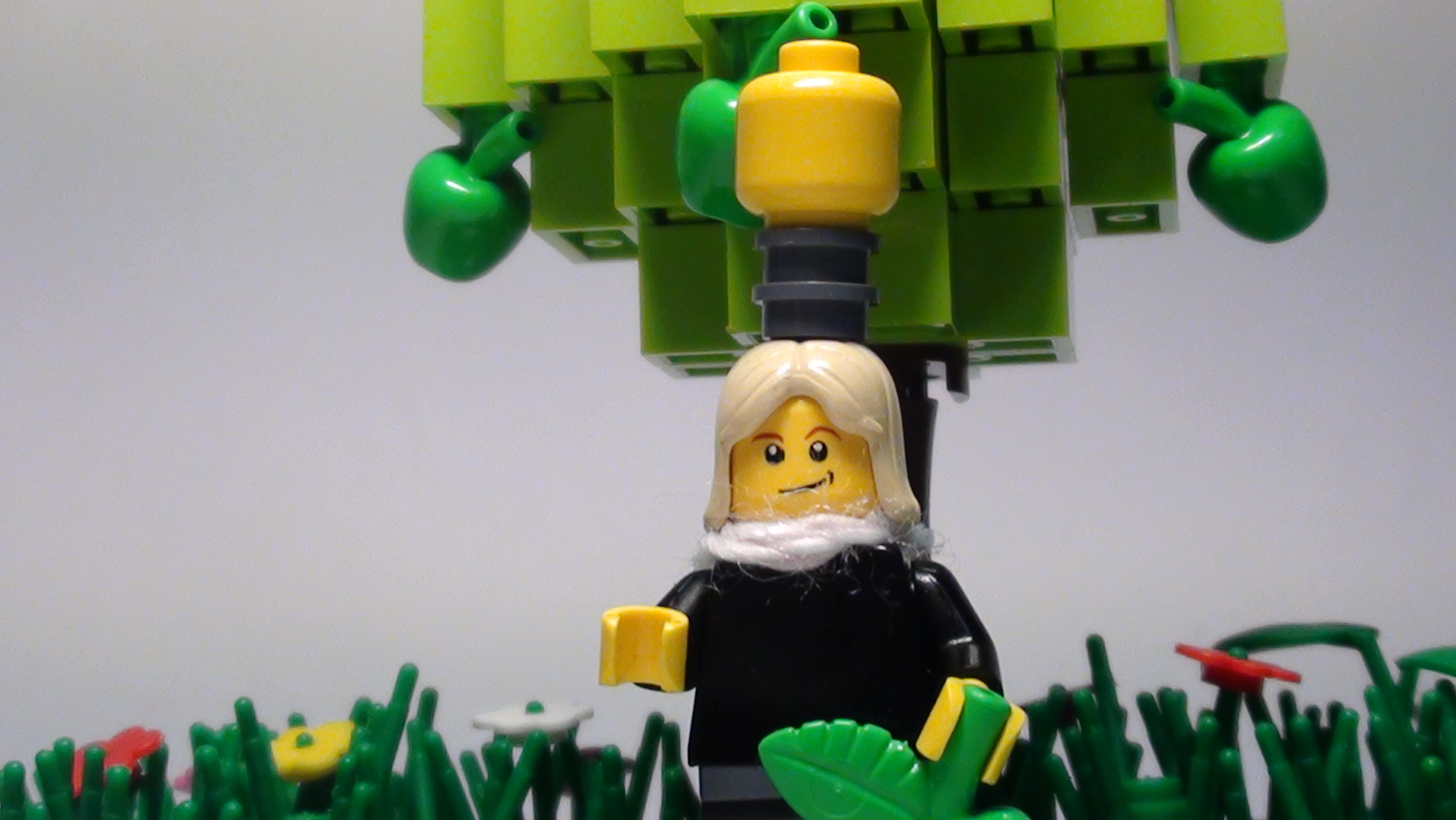 LEGO MOC - Because we can! - Newton's Apple: «Хмм... Почему яблоки всегда падают перпендикулярно земле?» — подумал он.