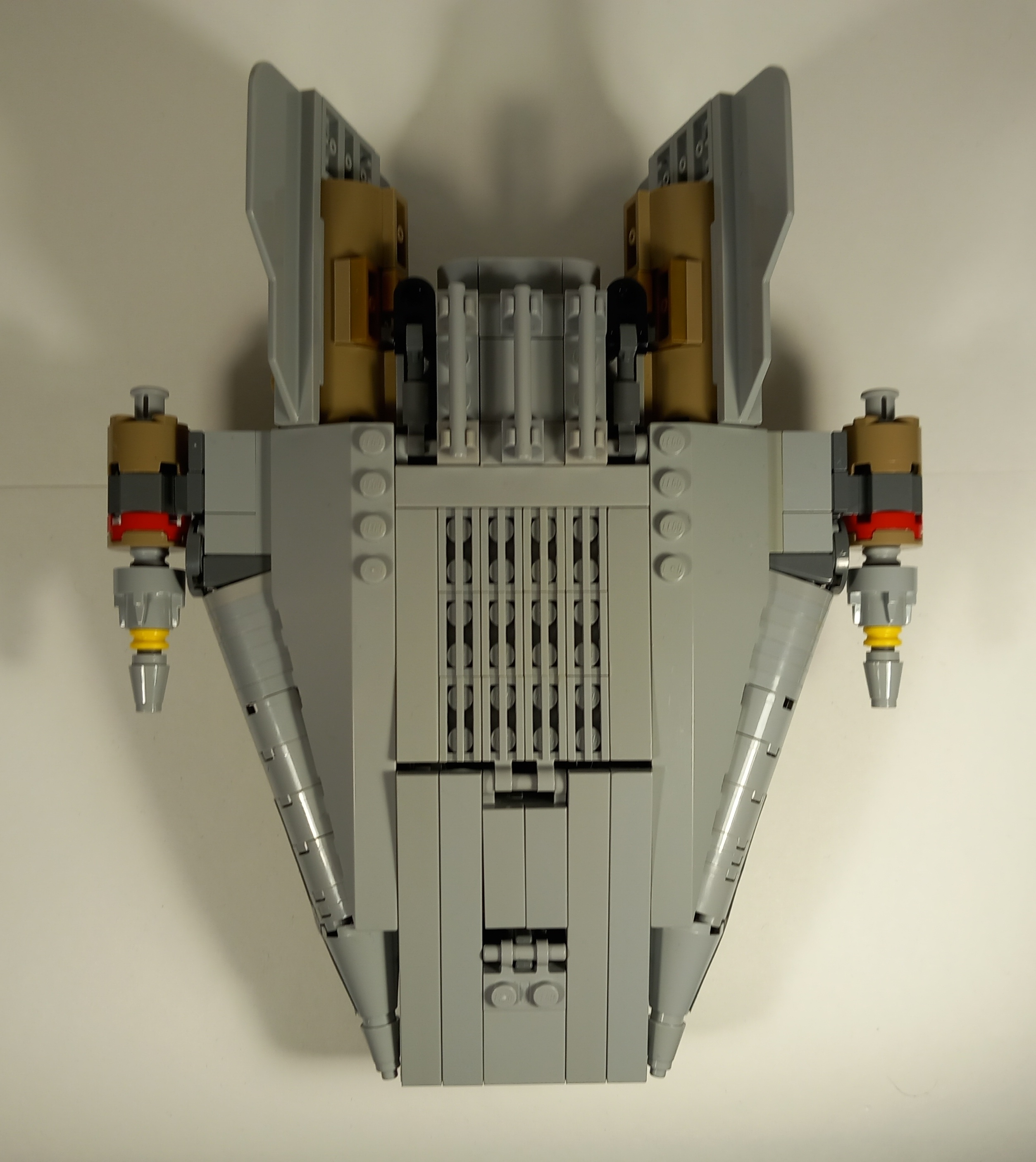 О работе. Как бы ни плох был сериал "Повстанцы", а сцена боя Дарта Вейдера с А-крылами мятежников была очень даже удачной (на первых порах, естественно), наглядно демонстрируя пилотажное мастерство владыки-ситха. К тому же мне очень понравился дизайн ранних А-крылов, вдохновлённый первоначальным коцепт-артом Ральфа МакКуорри. Наконец, компания Лего в далёком 2016 году выпустила неплохой набор 75150 по мотивам этой сцены. Так что выбор космических кораблей для конкурсной работы не составил большого труда. По сути, данная работа представляет собой переосмысление набора 75150 с широким использованием деталей и наклеек из него. Итак, к нашим звездолётам:
