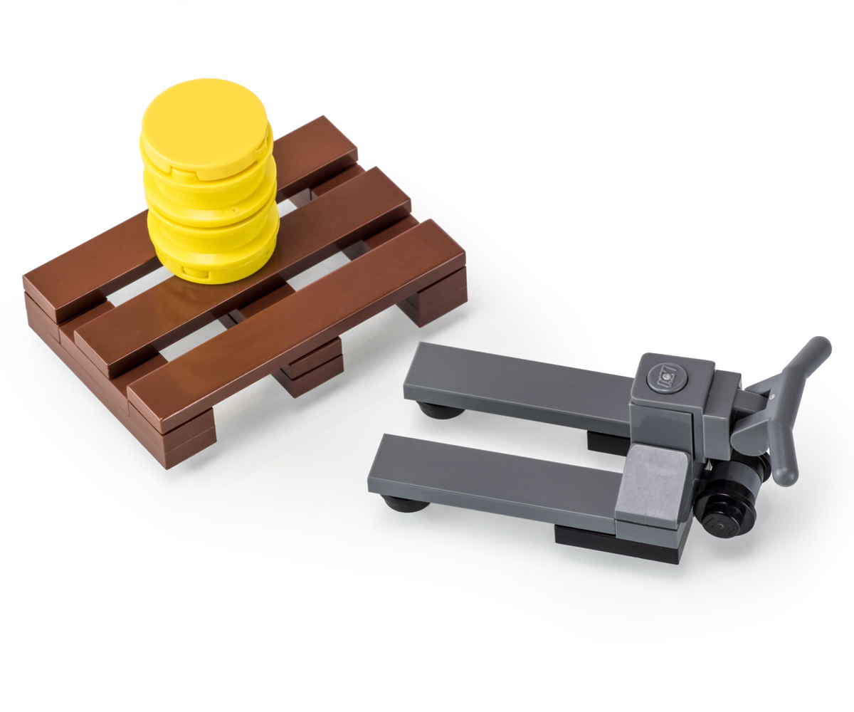 Pallet Jack with Pallet & Oil Drum