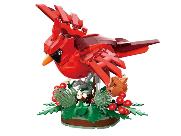 Красный кардинал на ветке остролиста