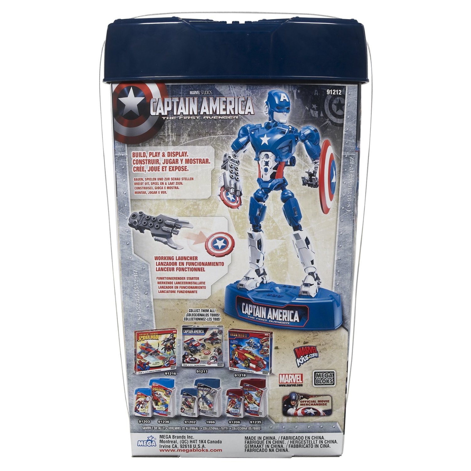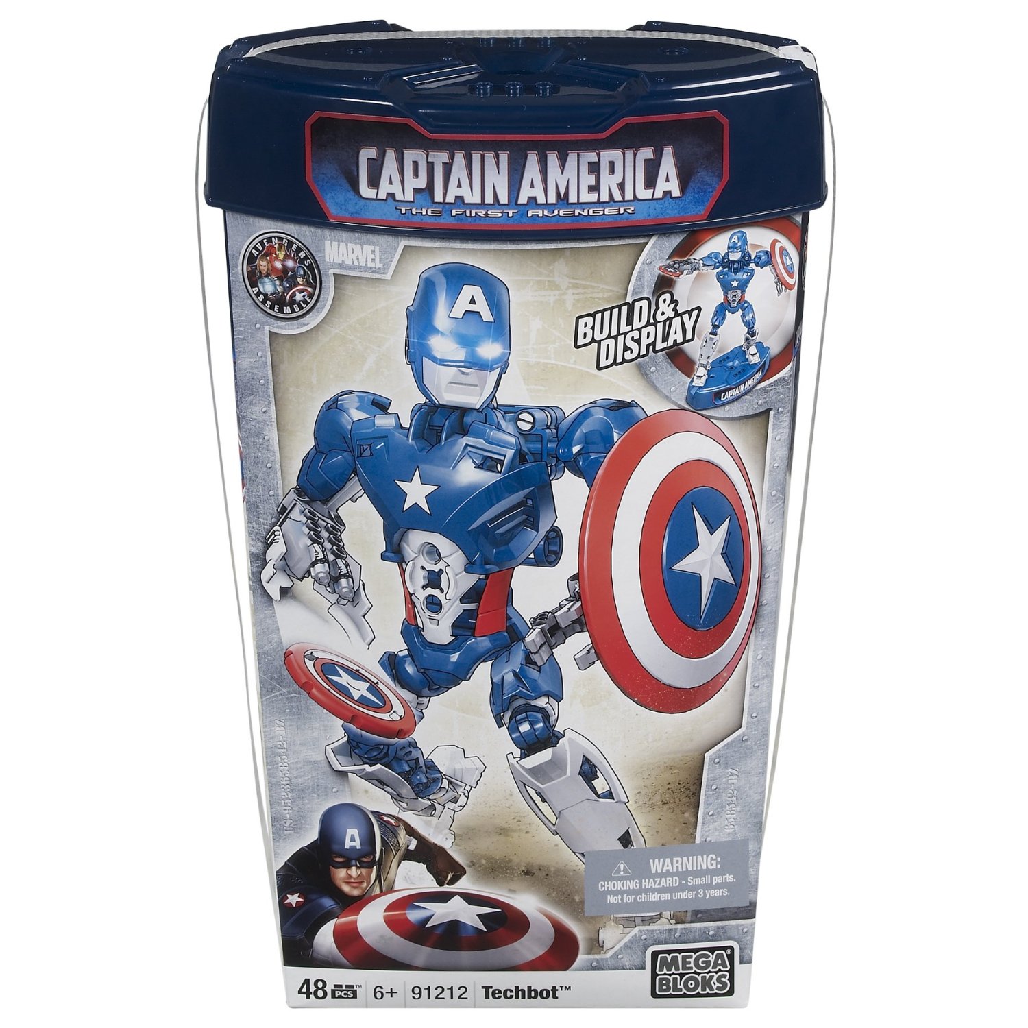 Join the fight against evil with Captain America in his new Techbot armor with the Mega Bloks Captain America Techbot (91212). The fully actionable 10'' buildable armor includes 50 buildable pieces and a wrist-mounted missile launcher that really fires! Place the Techbot on its stand to make it perform all kinds of actions - standing tall to secure the perimeter, crouching low to dodge enemy fire, hover straight up in the air to get a height advantage or angle Captain America to send his shield flying! Each Techbot is completely interchangeable with other Techbots; build your own custom armors for any situation!