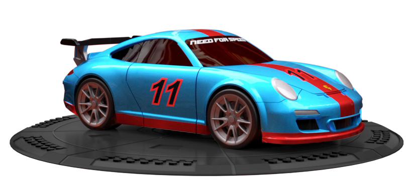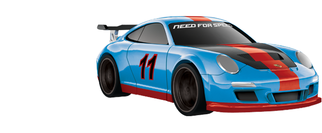 The Porsche GT3 RS is the high performance version of the Porsche 911! The GT3 RS has an incredible 300 horsepower-to-tonne ratio and capable of a top speed of 193 mph. This sleek speed machine is painted electric blue with red racing stripes down the center and bottom of the car! Race your customized #11 Porsche to the finish line!