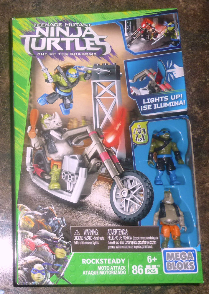 TMNT Out of the Shadows Rocksteady Moto Attack Mega Bloks Unbox Build & Play