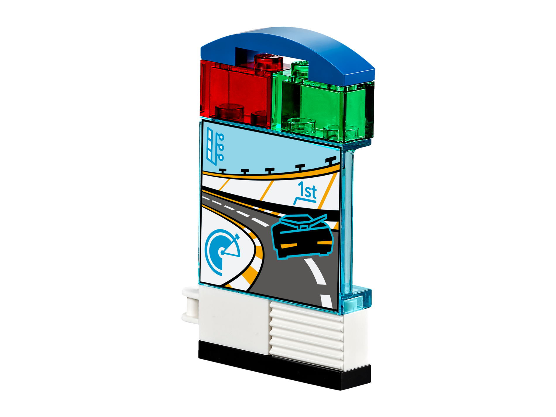 | 1 X Panel 1 x 4 x 3 with Side Supports - Hollow Studs with Race Car on Track Pattern | Trans-Light Blue |   |  |