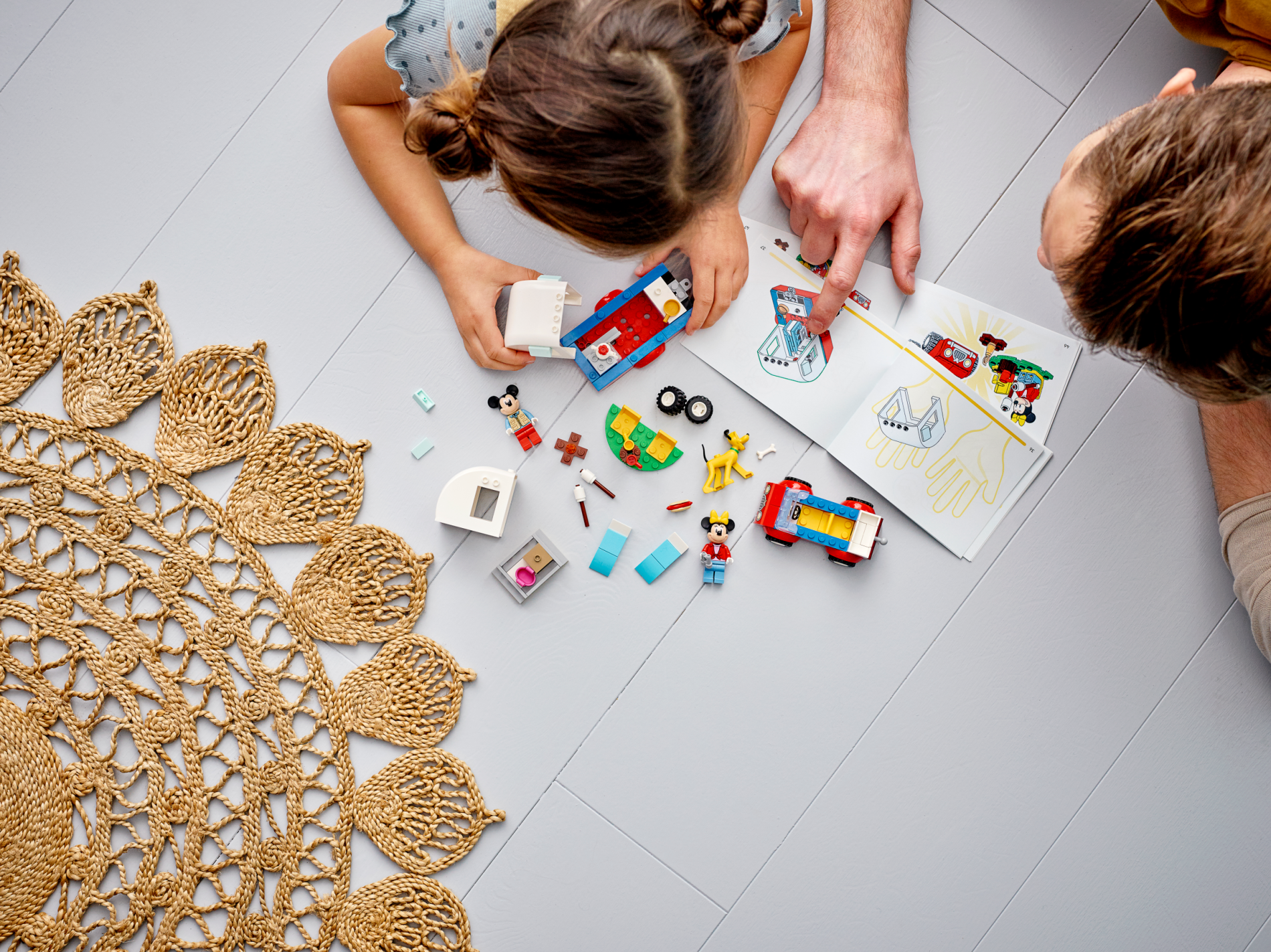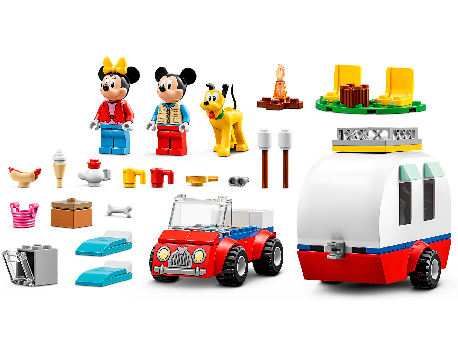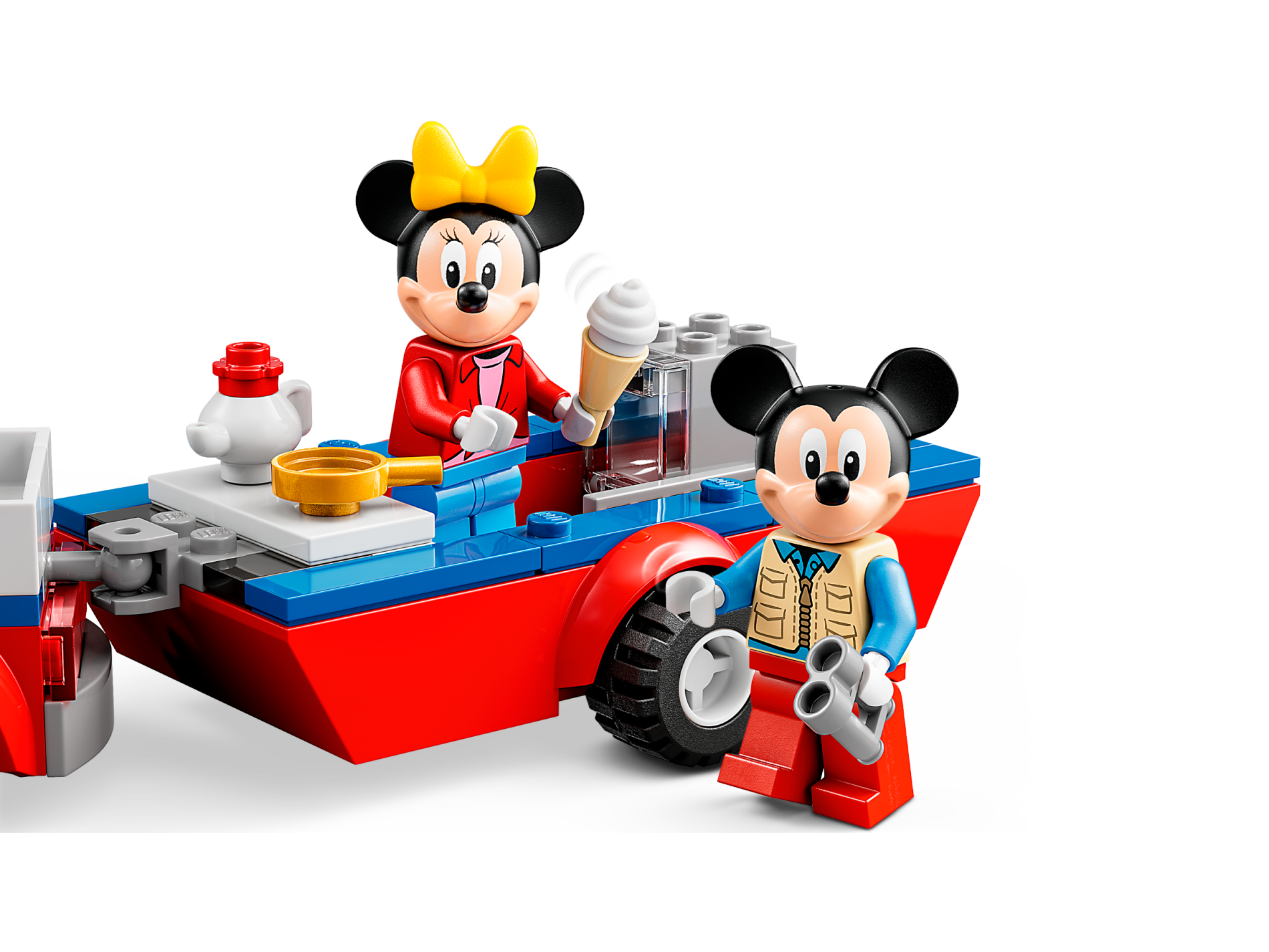 | 1 X Slope, Curved 2 x 4 x 2/3 with Bottom Tubes with Car Headlights, Silver Bumper and Grille with Mickey Mouse Logo Pattern | Red |   |  |