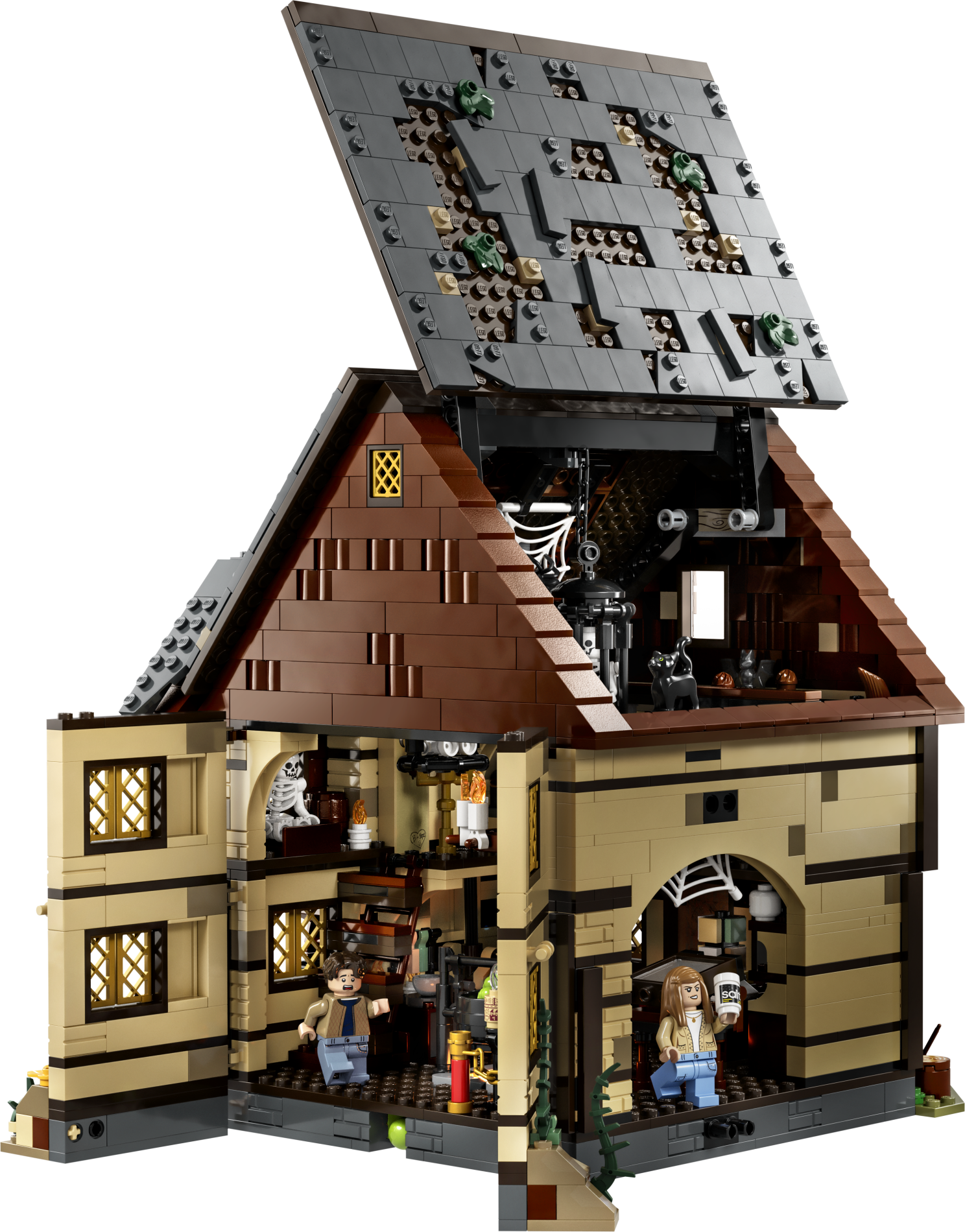 | 1 X Tile 1 x 2 with Groove with Dark Red Witch Minifigure, Text and Cat and Lime Stars and Swirls Pattern | Tan |   |  |