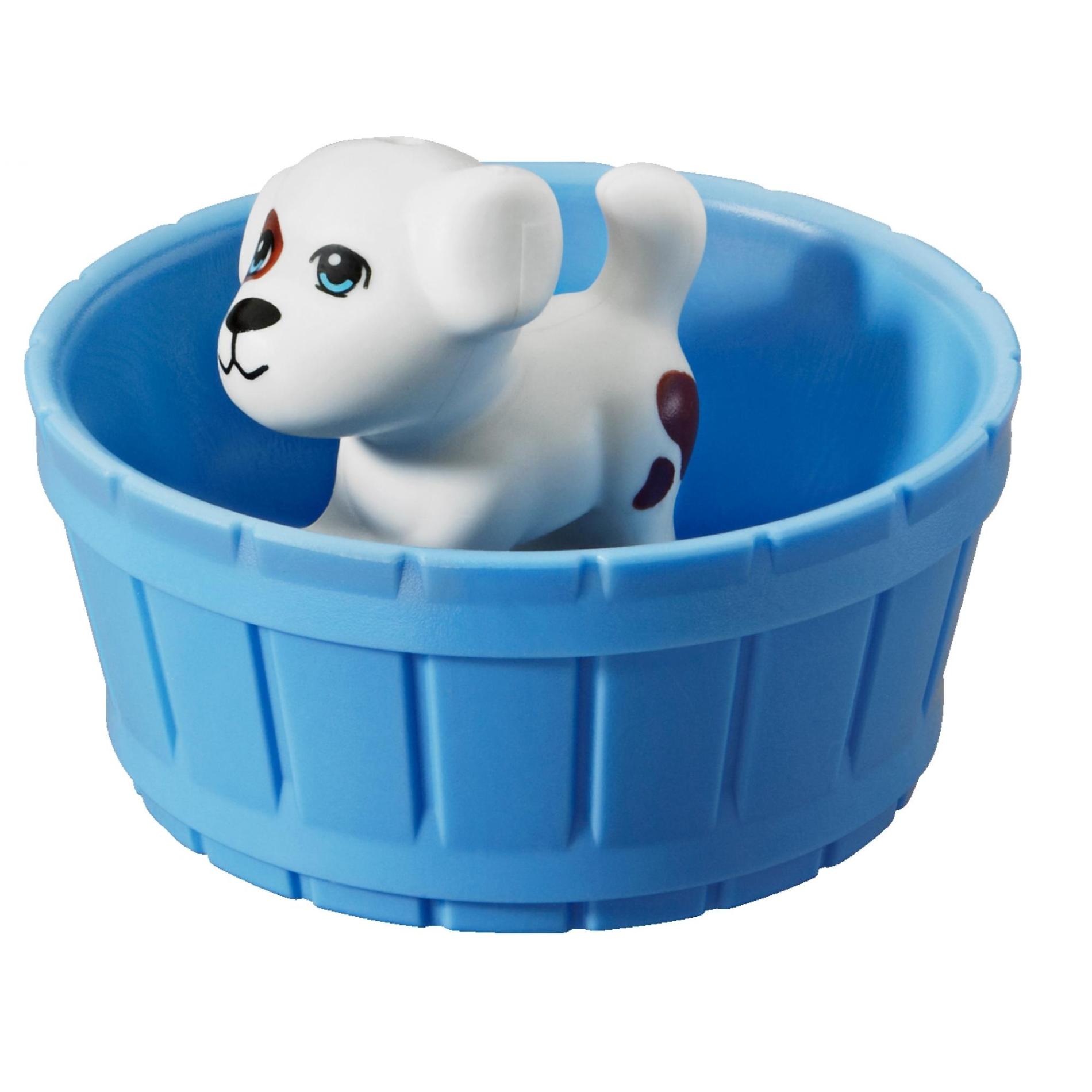 | 1 X Dog Small Standing with Bright Light Blue Eyes, Black Nose and Mouth, and Reddish Brown Patch and Spots Pattern | White |   |  |