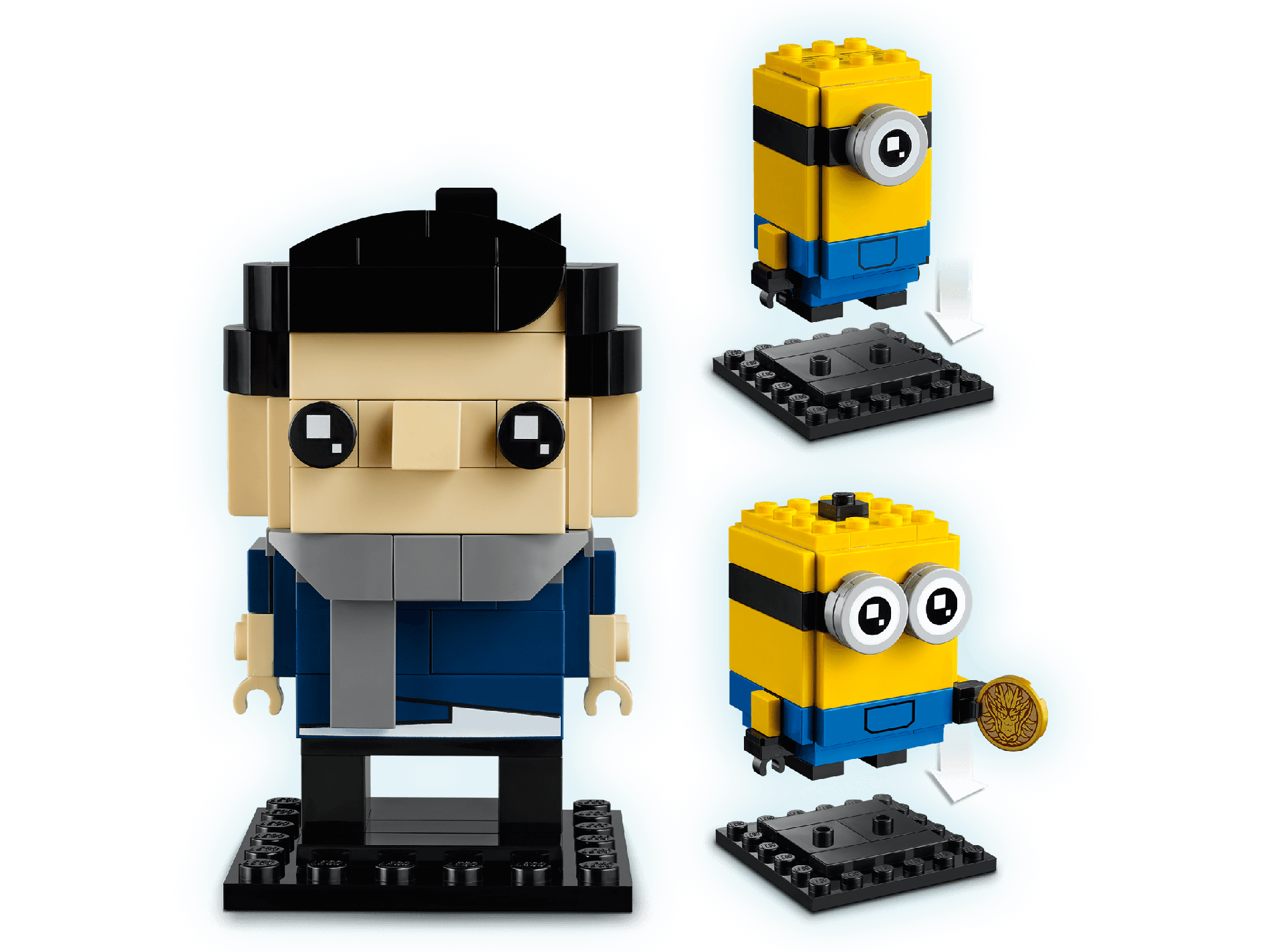 | 3 X Tile, Round 2 x 2 with Bottom Stud Holder with White Eye and Black Pupil with 2 White Squares Pattern (BrickHeadz Minion Eye) | Light Bluish Gray |   |  |