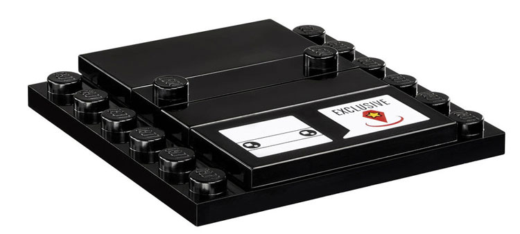 | 1 X Tile 2 x 4 with White BrickHeadz Head and Word Balloon with 'EXCLUSIVE' and Yellow Star on Red Jewel Pattern | Black |   |  |