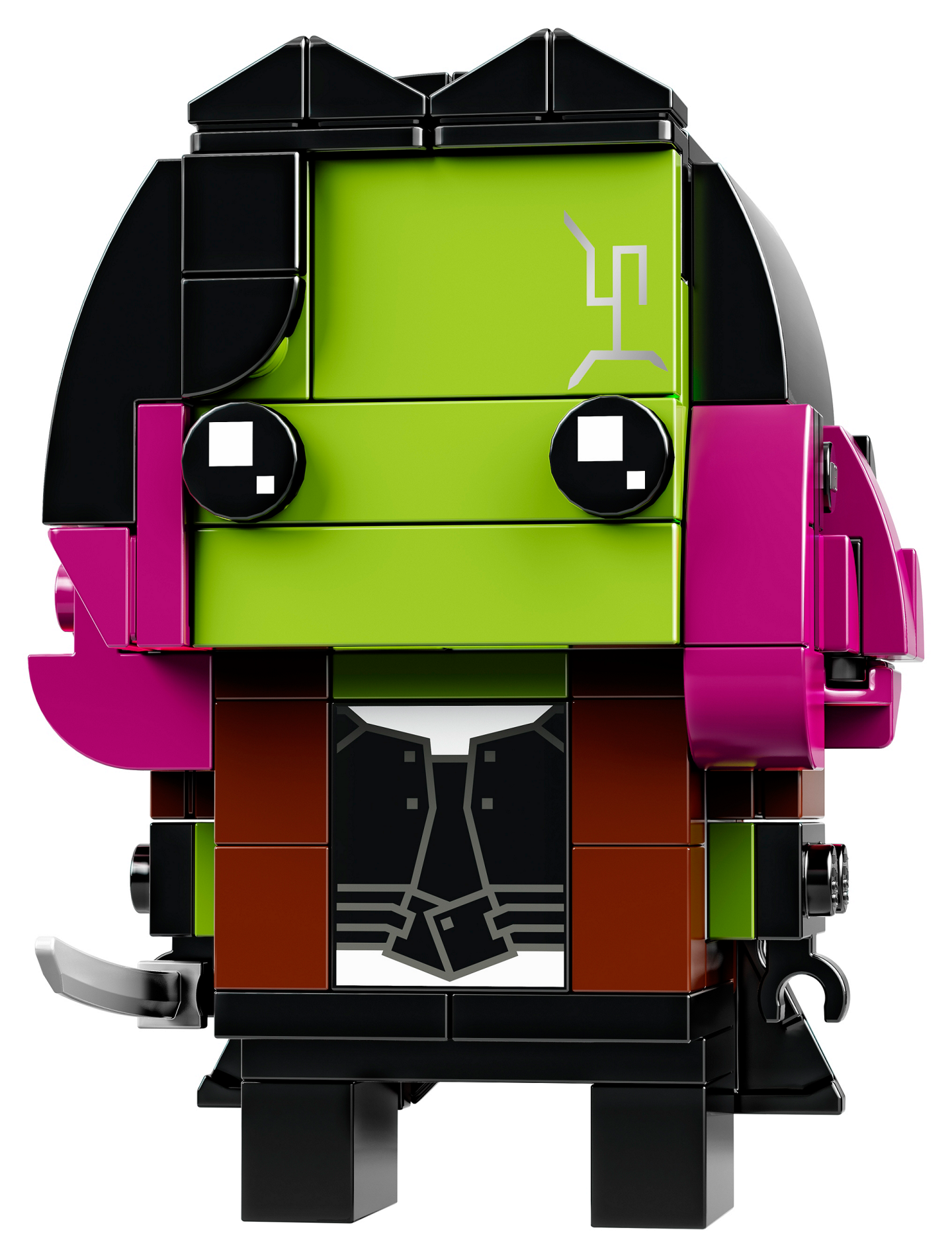| 1 X Brick 1 x 2 x 2 with Inside Stud Holder with Dark Bluish Gray Outlined Vest and Belt and White Undershirt Pattern (BrickHeadz Gamora Torso) | Black |   |  |