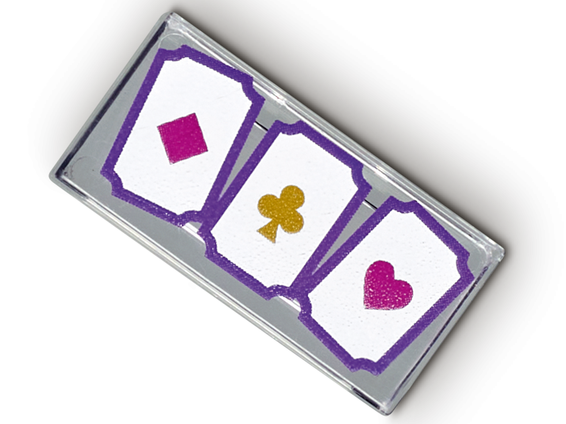 | 1 X Tile 1 x 2 with Groove with 3 Playing Cards with Diamond, Club and Heart Pattern | Trans-Clear |   |  |