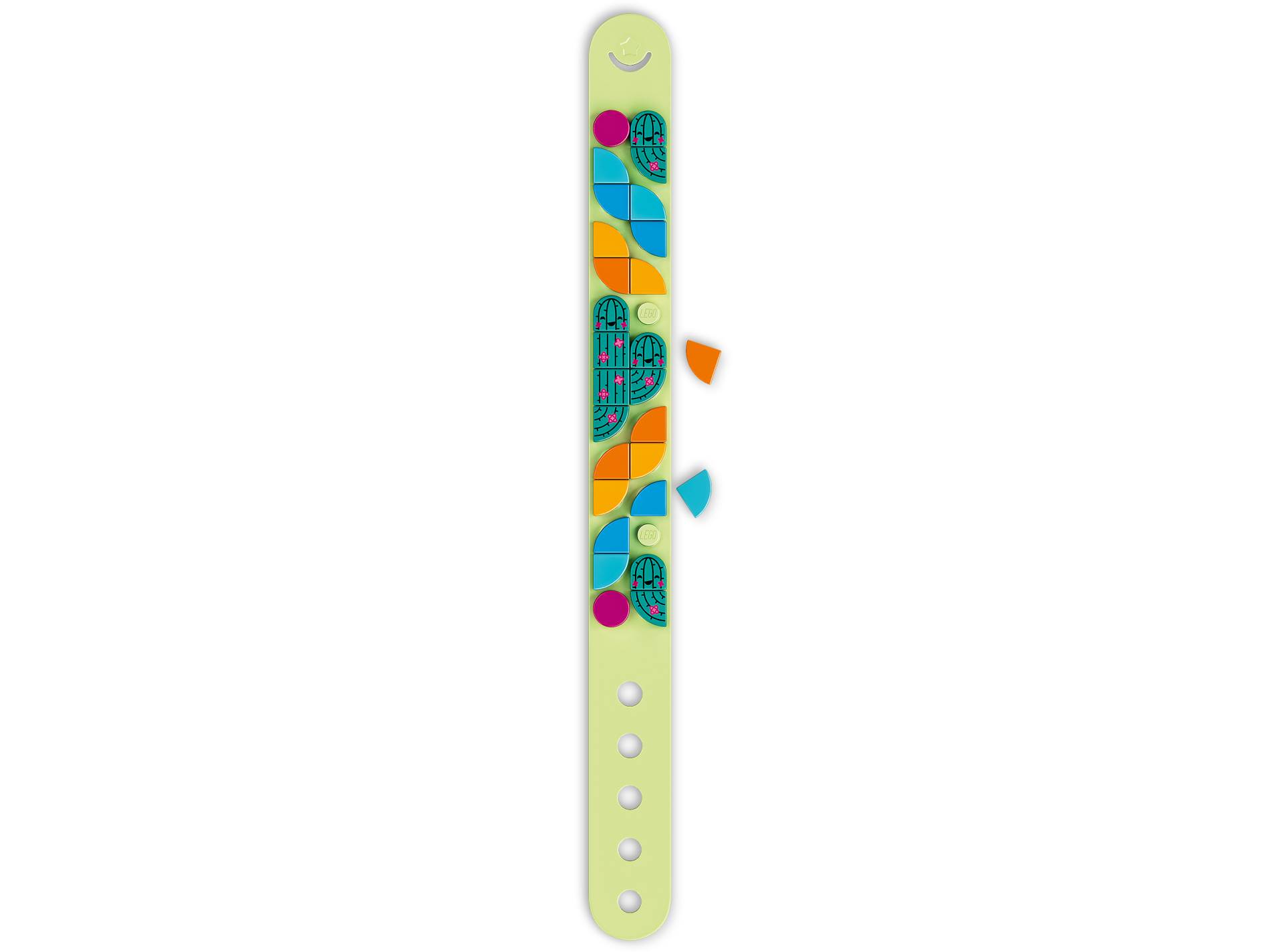 Tile, Round 1 x 1 Half Circle Extended (Stadium) with Bright Green Cactus Face with Flowers Pattern