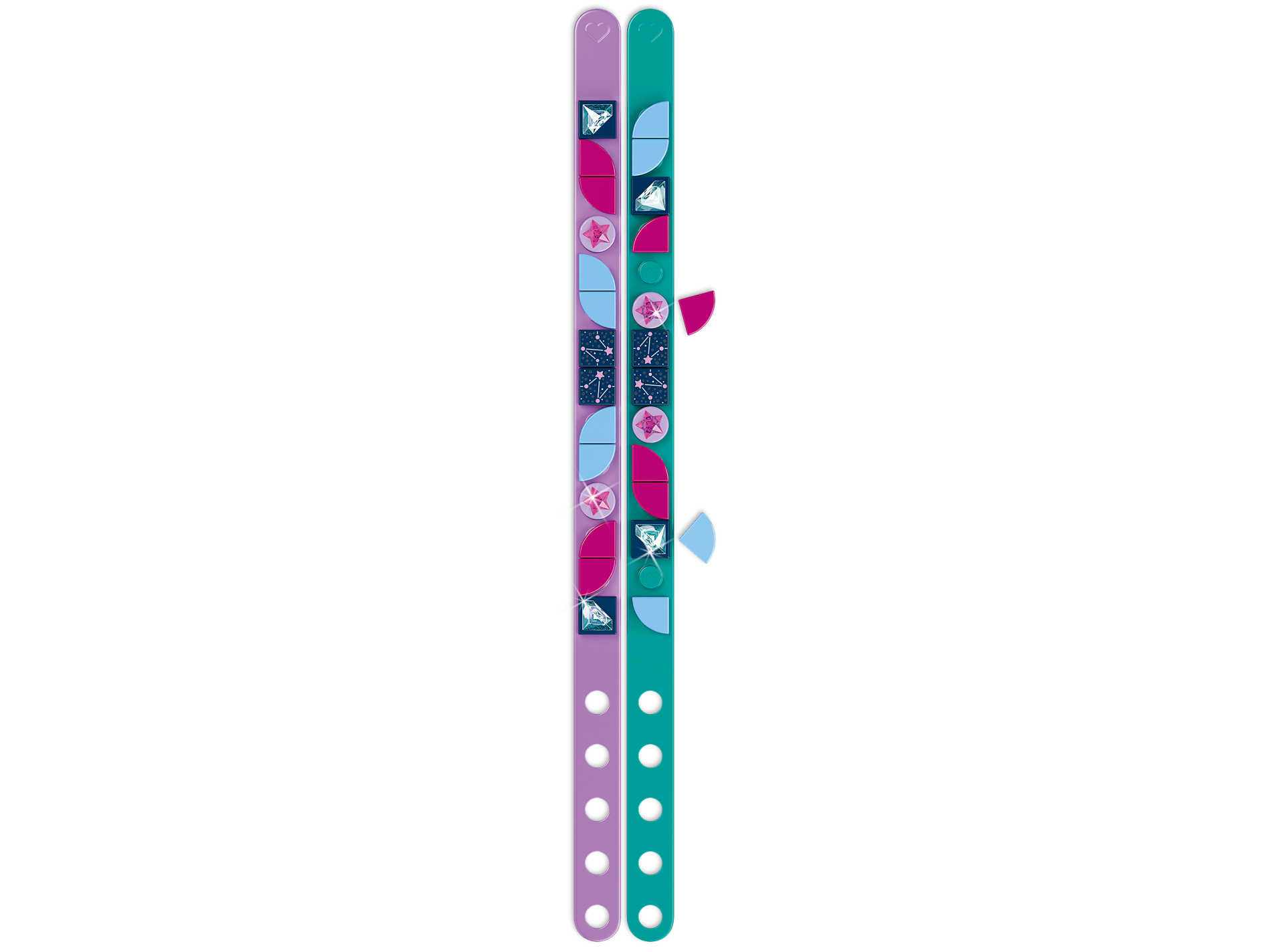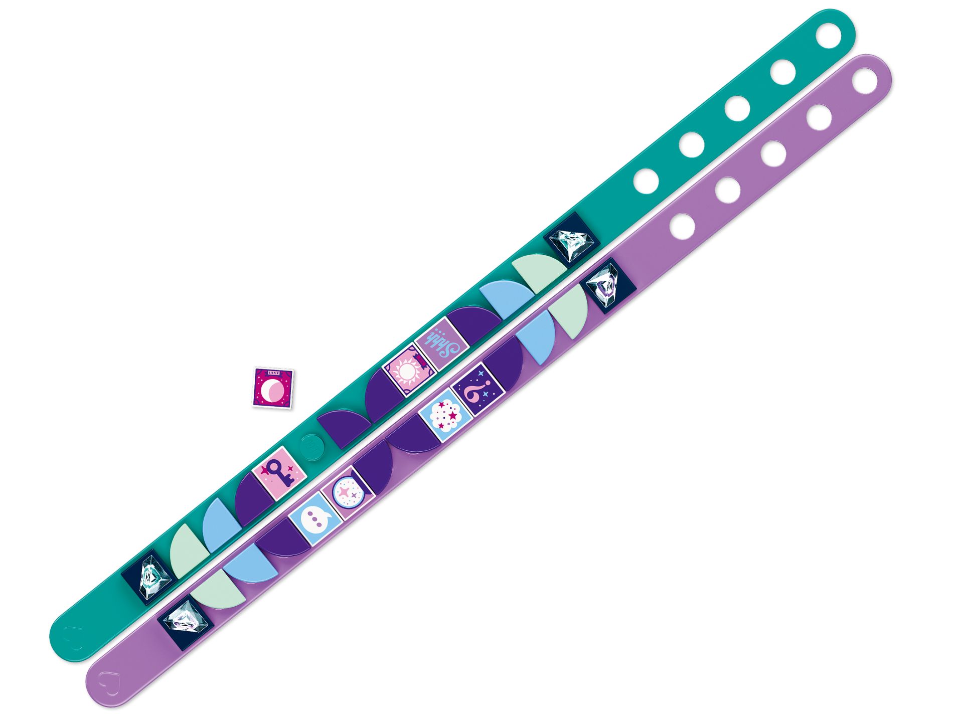 | 4 X Tile 1 x 1 with Groove with Constellation with Metallic Light Blue, Metallic Pink, and Silver Stars, Dots, and Lines Pattern | Dark Blue |   |  |