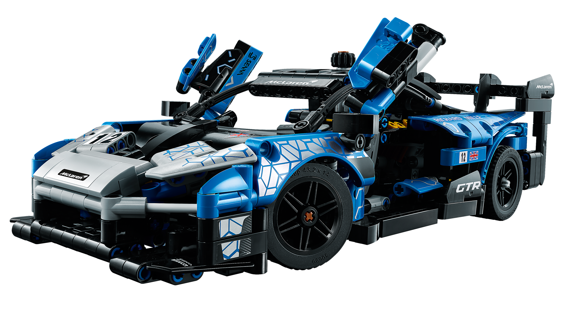 | 1 X Technic, Liftarm, Modified Bent Thick L-Shape 3 x 5 with Black Number 12 on White Background and Flag of Great Britain Pattern Model Right Side (Sticker) - Set 42123 | Blue |   |  |