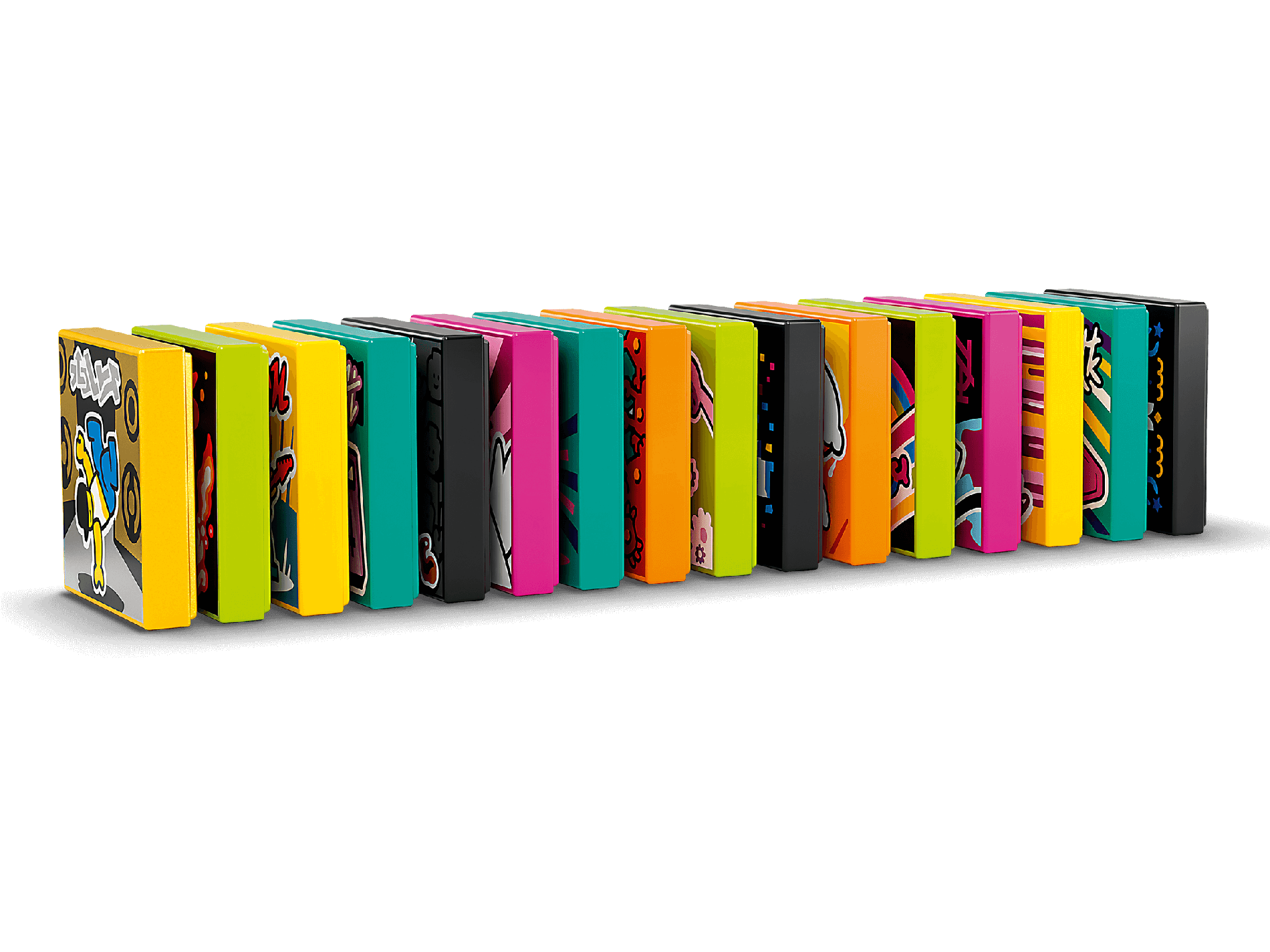 | 14 X Tile 2 x 2 with Groove with BeatBit Album Cover - Black Minifigure in Yellow and Purple Splotches Pattern | Black |   |  |
