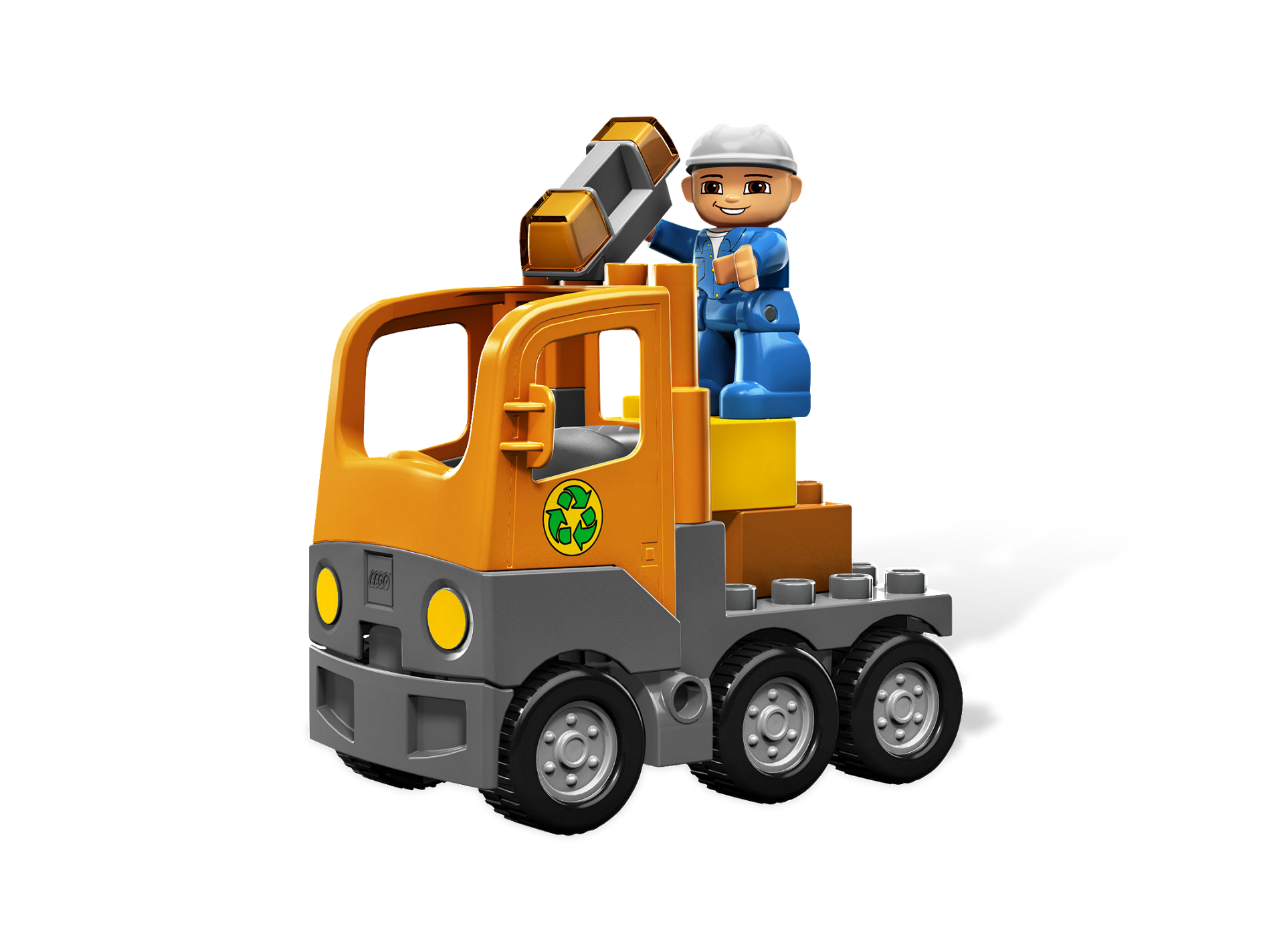 Here comes the big garbage truck, rolling up the street to keep the town clean! The garbage man shovels up bricks, then loads them into the can for the truck to tip into its back and drive away. DUPLO pieces are sturdy and safe for smaller hands! Perfect for younger builders! Includes truck, can, sanitation figure, shovel, and DUPLO bricks! Tip the can into the back of the truck! Measures over 4 inches (10cm) long by 3 inches (7cm) wide and 5 inches (12cm) tall!
