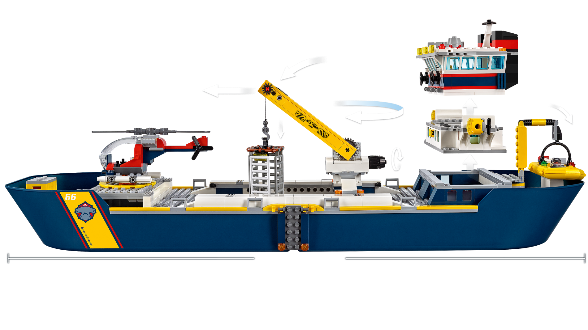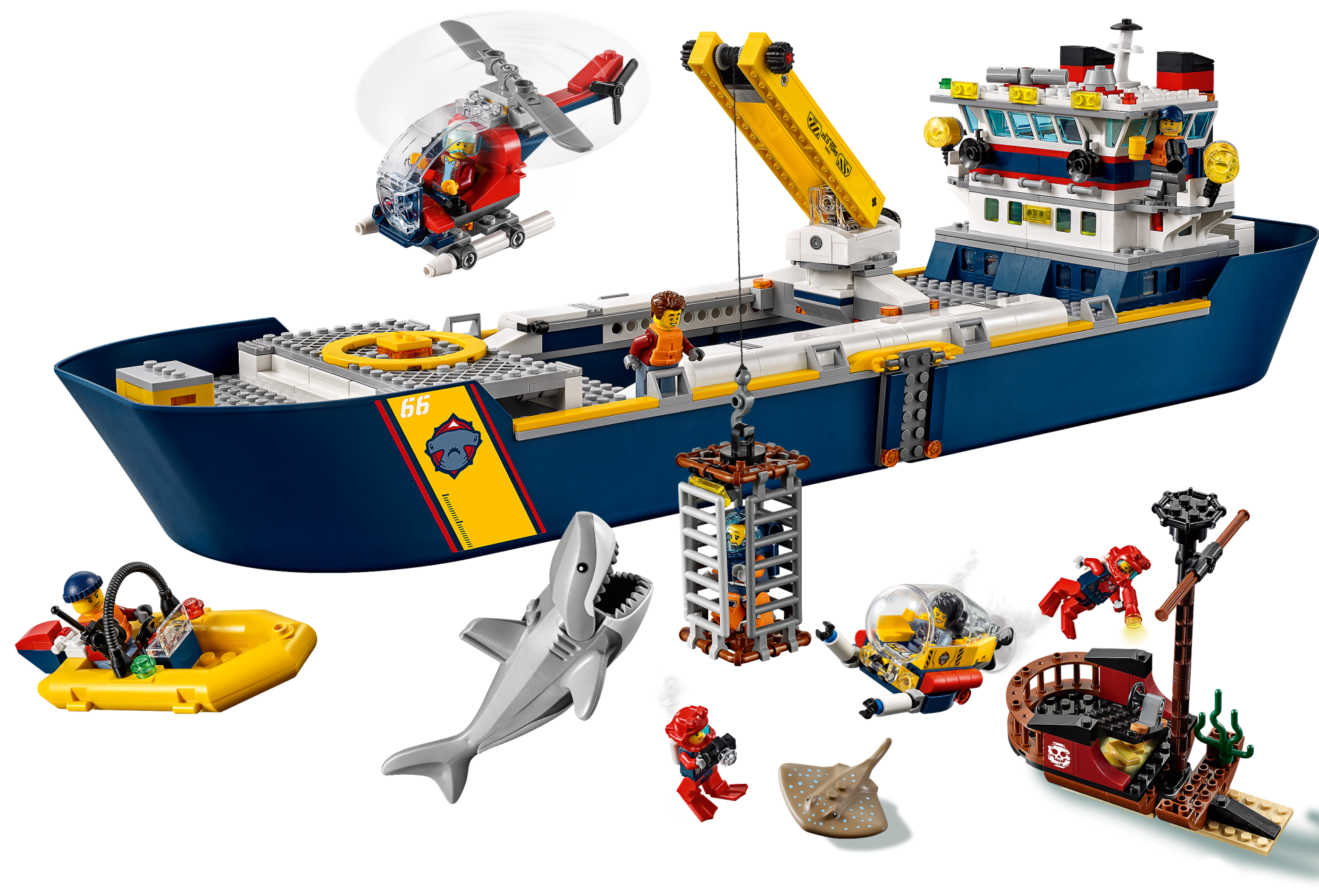 | 1 X Boat, Hull Giant Bow 40 x 20 x 7, Top Color Light Bluish Gray with '66' and Hammerhead Shark Head Pattern on Both Sides (Stickers) - Set 60266 | Dark Blue |   |  |