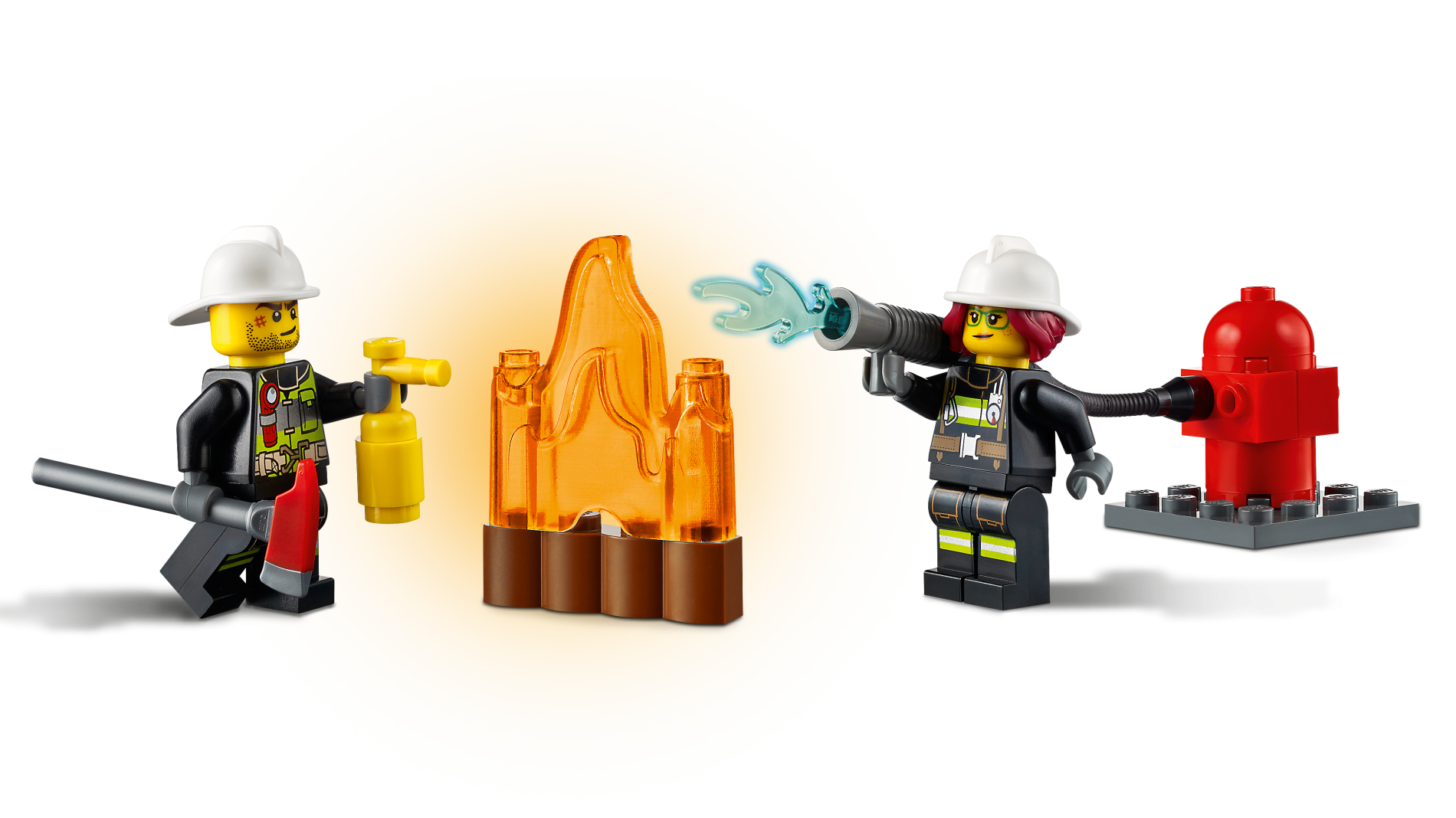Fire - Reflective Stripes with Utility Belt and Flashlight, White Fire Helmet, Beard Stubble, Brown Eyebrows
