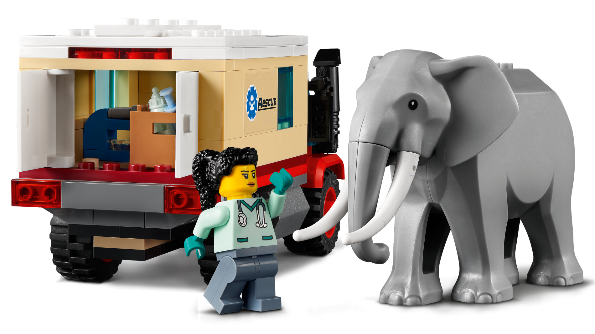 | 2 X Panel 1 x 4 x 2 with Side Supports - Hollow Studs with Paw Print and 'RESCUE' Pattern (Sticker) - Set 60307 | Tan |   |  |