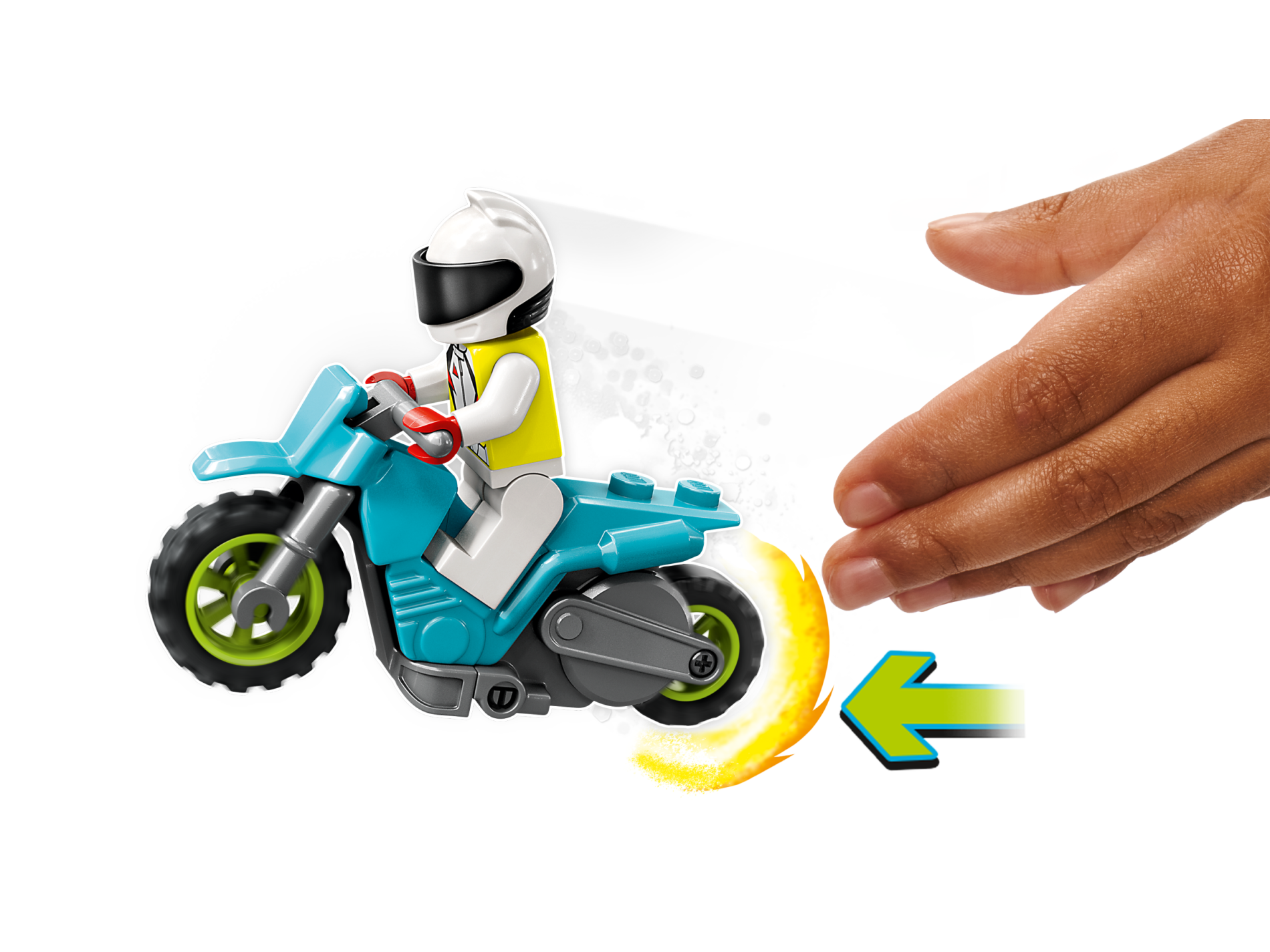 | 1 X Stuntz Flywheel Motorcycle Dirt Bike with Dark Bluish Gray Frame, Lime Wheels, and Dark Bluish Gray Handlebars | Medium Azure |   |  |