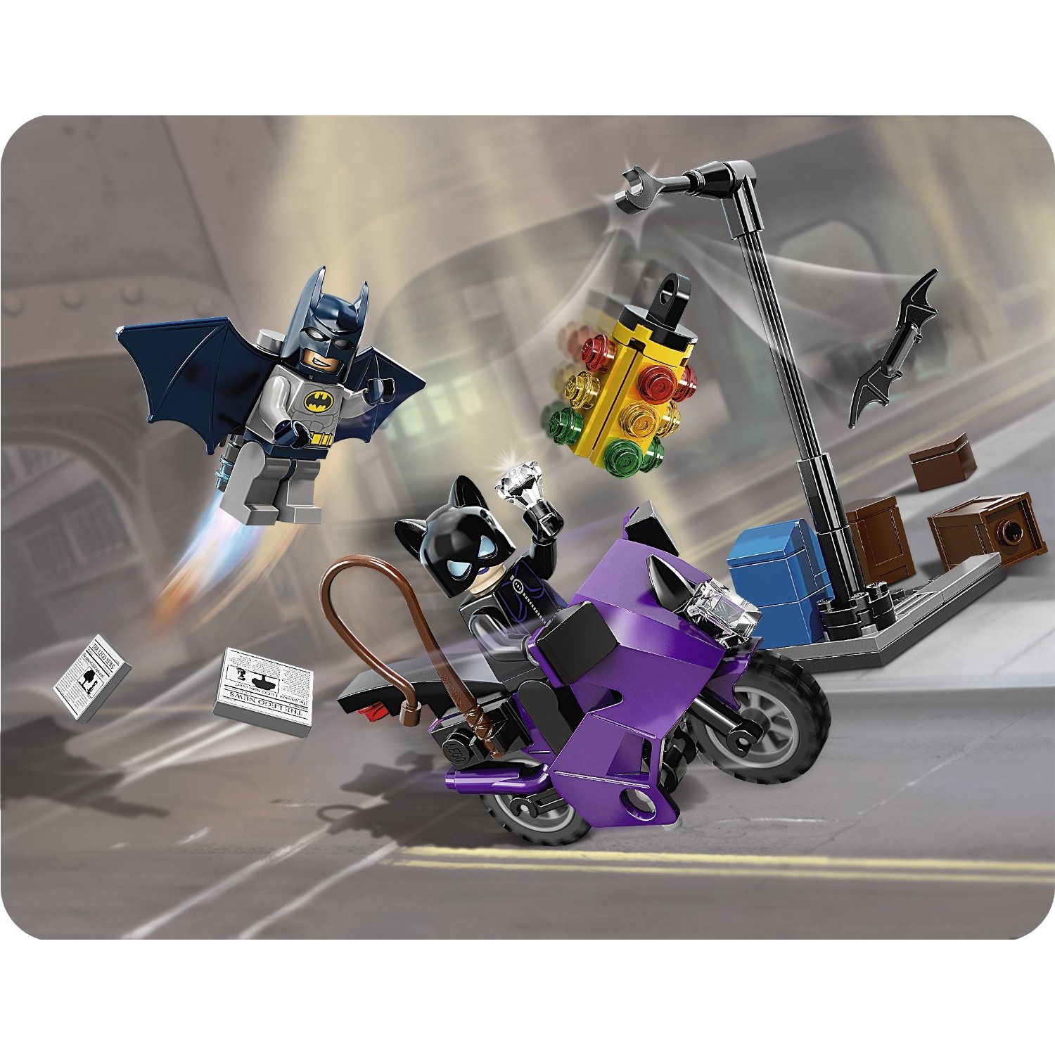 | 1 X Motorcycle City, Complete Assembly with Black Chassis (Long Fairing Mounts) and Light Bluish Gray Wheels | Dark Purple |   |  |