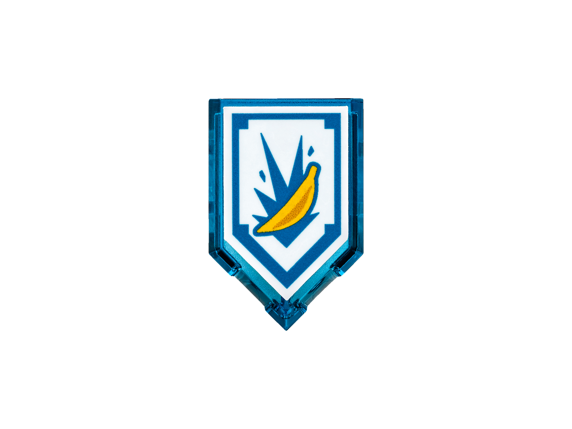 | 1 X Tile, Modified 2 x 3 Pentagonal with Nexo Power Shield Pattern - Banana Bombs | Trans-Dark Blue |   |  |