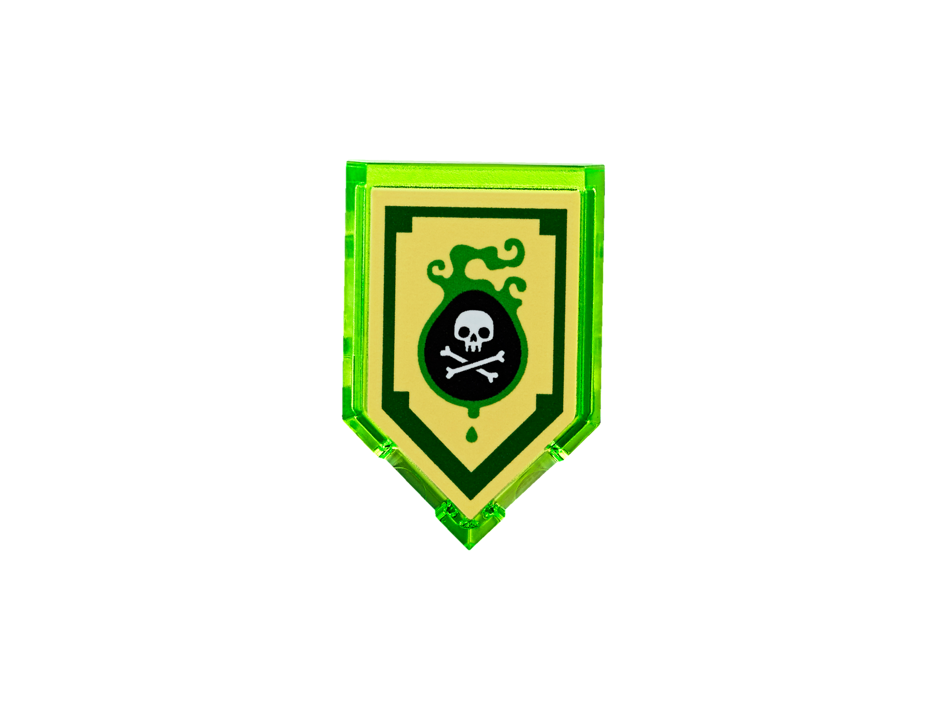 | 1 X Tile, Modified 2 x 3 Pentagonal with Nexo Power Shield Pattern - Venom Bite | Trans-Bright Green |   |  |