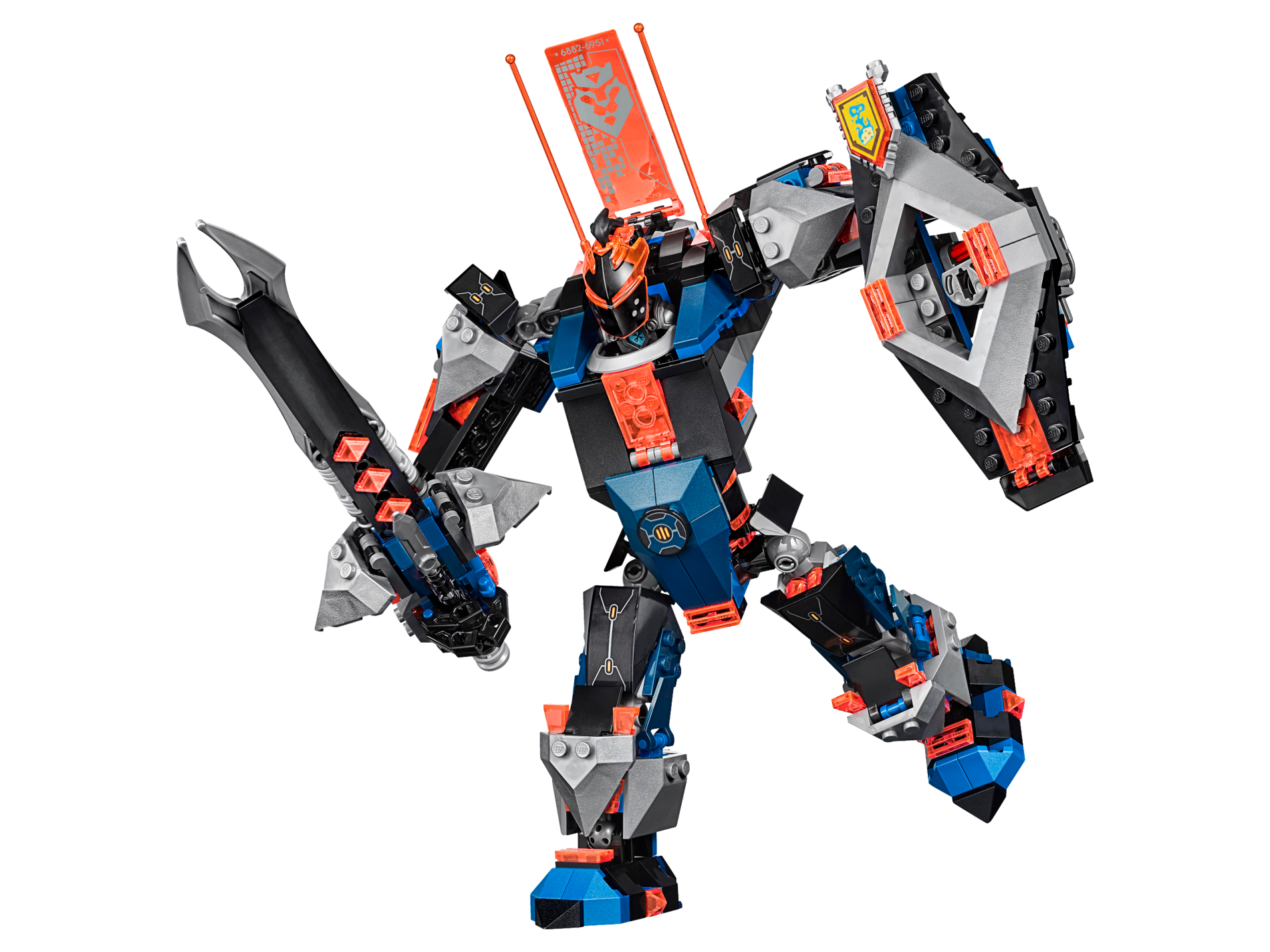 | 1 X Tile, Modified 2 x 3 Pentagonal with Nexo Power Shield Pattern - Foul Steam | Trans-Neon Orange |   |  |