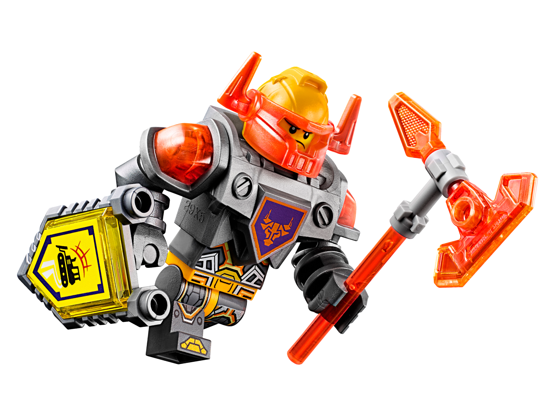 | 1 X Tile, Modified 2 x 3 Pentagonal with Nexo Power Shield Pattern - Bulldozer | Trans-Yellow |   |  |