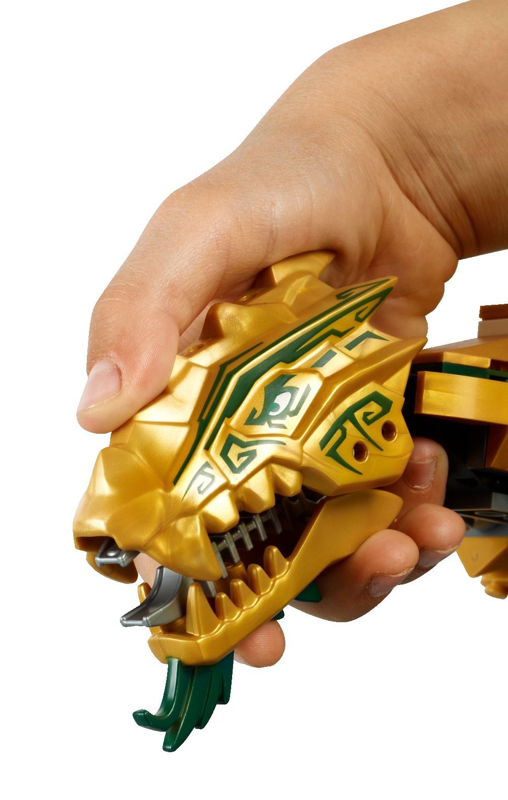 | 1 X Dragon Head (Ninjago) Upper Jaw Spiny with Dark Green Stripes Pattern | Pearl Gold |   |  |