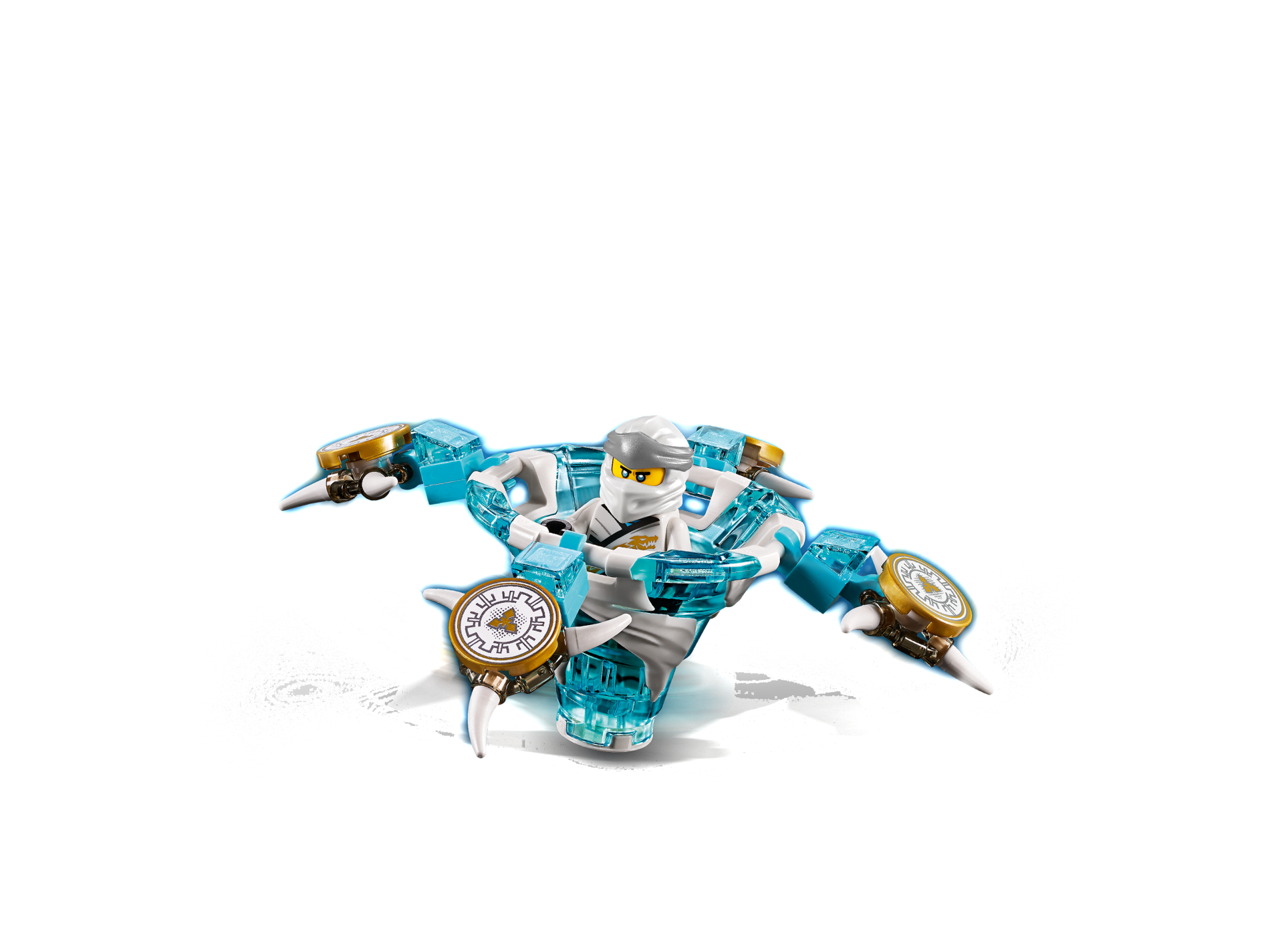Tile, Round 2 x 2 with Bottom Stud Holder with Silver Crenelations and Gold Throwing Star Pattern