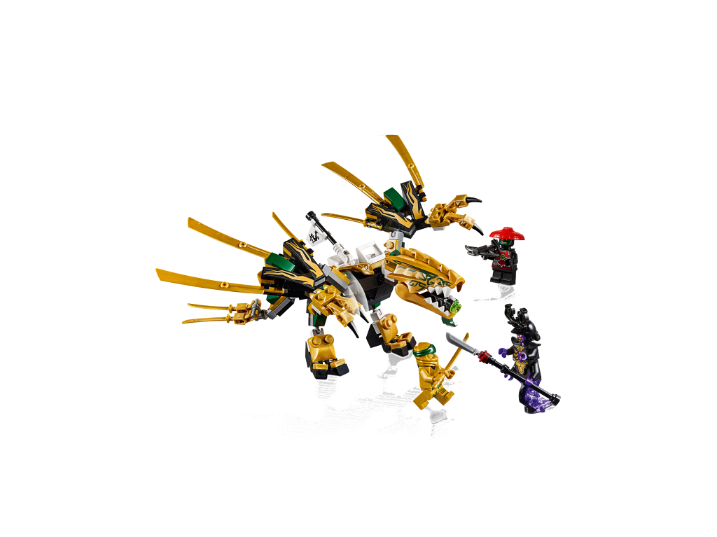 | 1 X Dragon Head (Ninjago) Upper Jaw with White Teeth, Gold Eyes, and Dark Green Decorations Pattern | Pearl Gold |   |  |