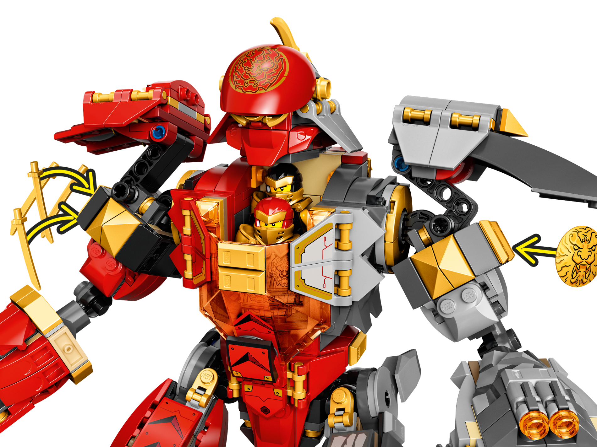 | 2 X Minifigure, Shield Round with Rounded Front with Black and Gold Ninjago Lion Head Pattern | Pearl Gold |   |  |