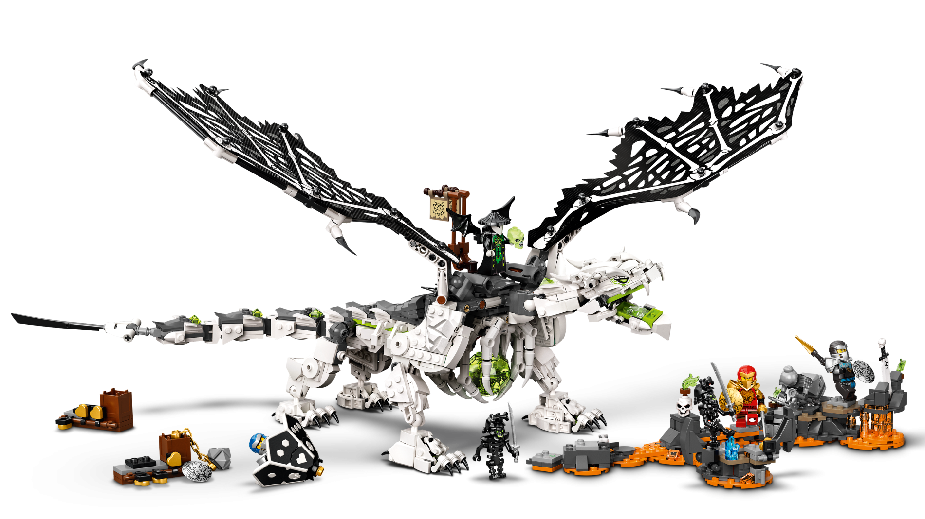 | 1 X Cloth Wing Dragon Left, Black and Tattered with White Bones Pattern | White |   |  |