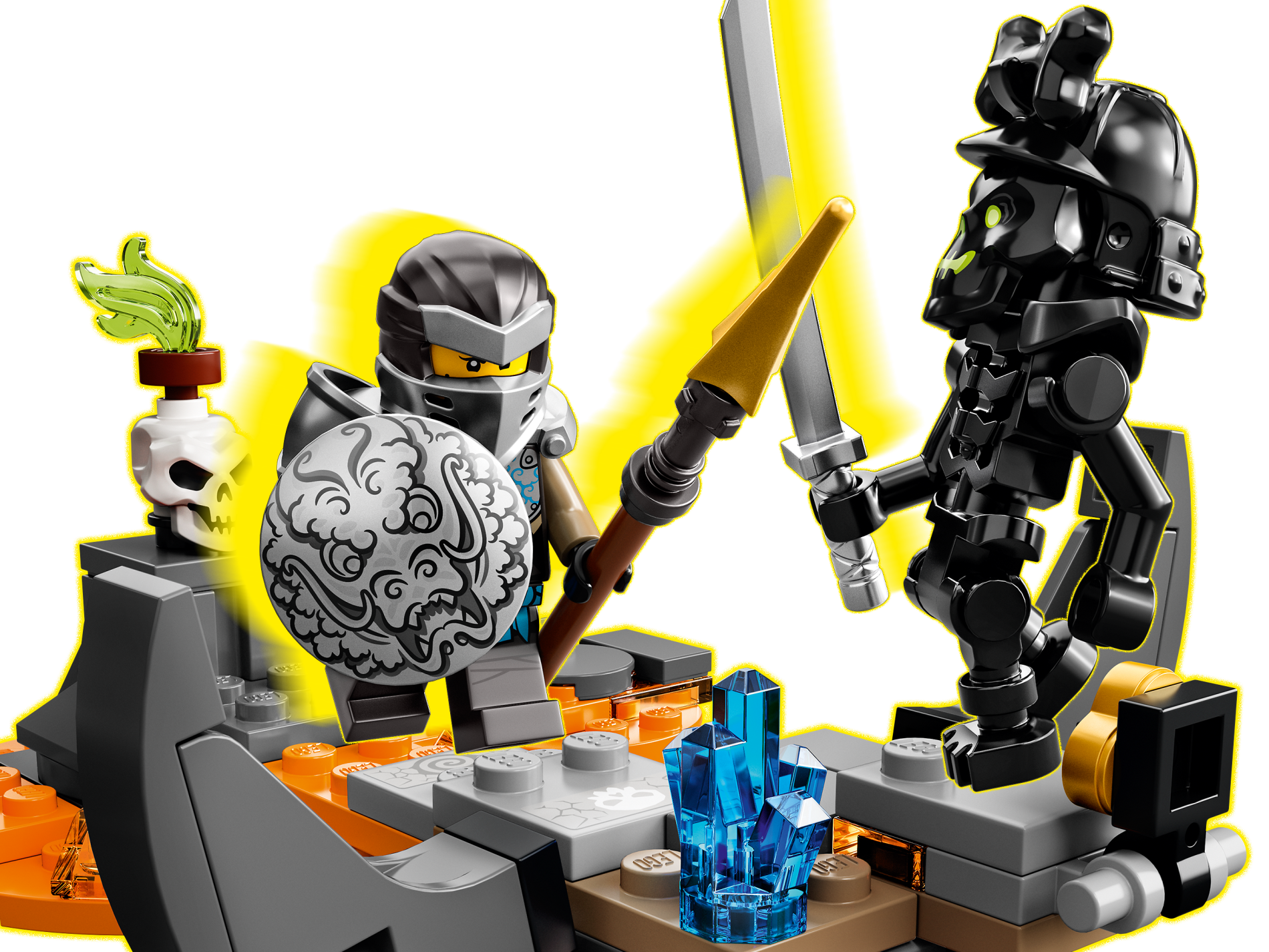 | 2 X Tile, Modified 2 x 2 with Studs on Edge with White Skull and Cracks Pattern (Sticker) - Sets 71717 / 71721 | Light Bluish Gray |   |  |
