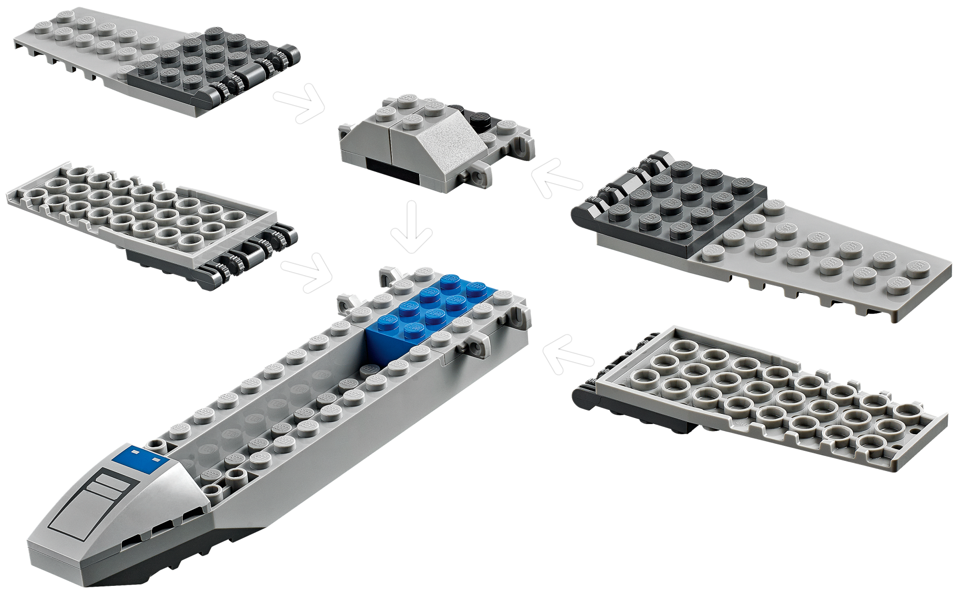| 1 X Wedge 4 x 4 No Studs with Blue Rectangle and Dark Bluish Gray Air Intake Vent Pattern | Light Bluish Gray |   |  |