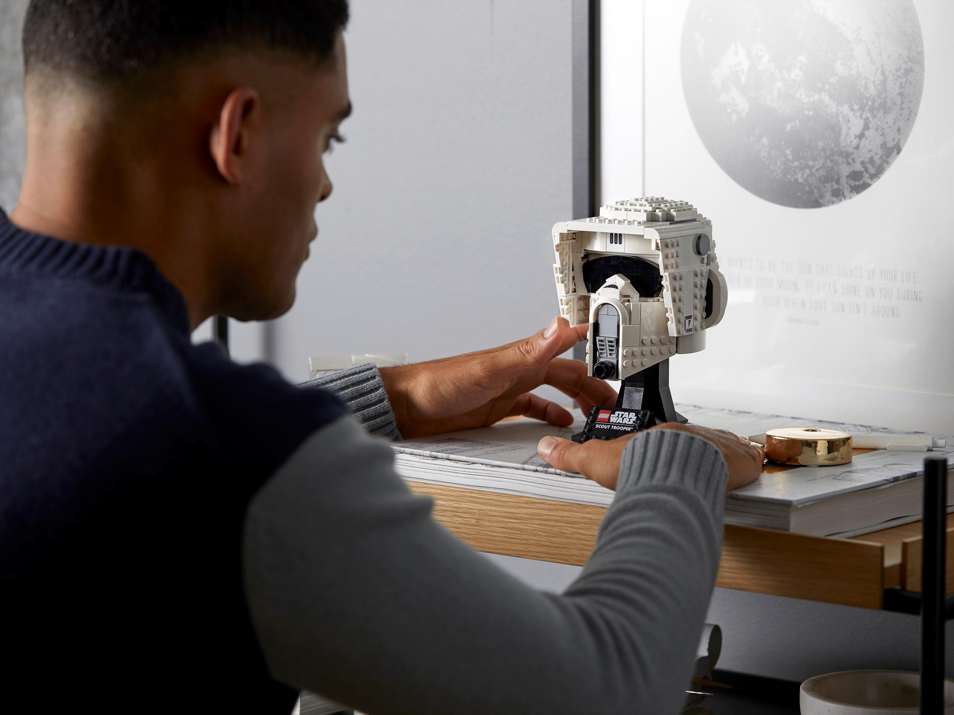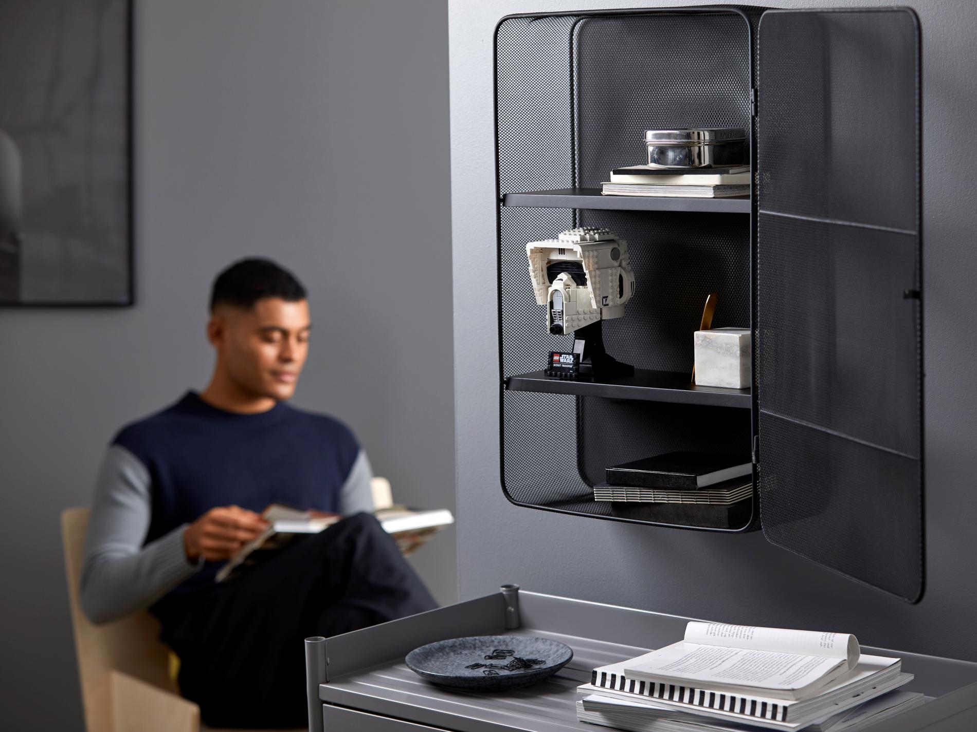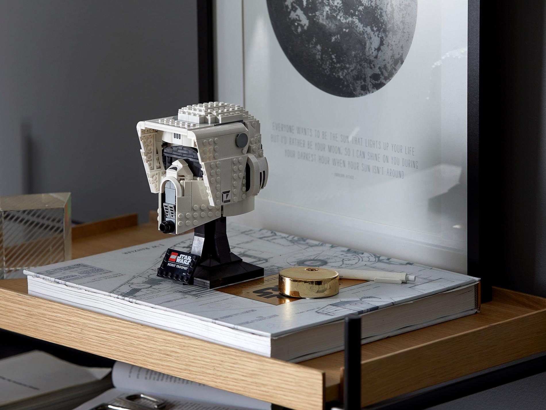| 1 X Tile, Modified 4 x 6 with Studs on Edges with Star Wars Logo and 'SCOUT TROOPER' Pattern | Black |   |  |