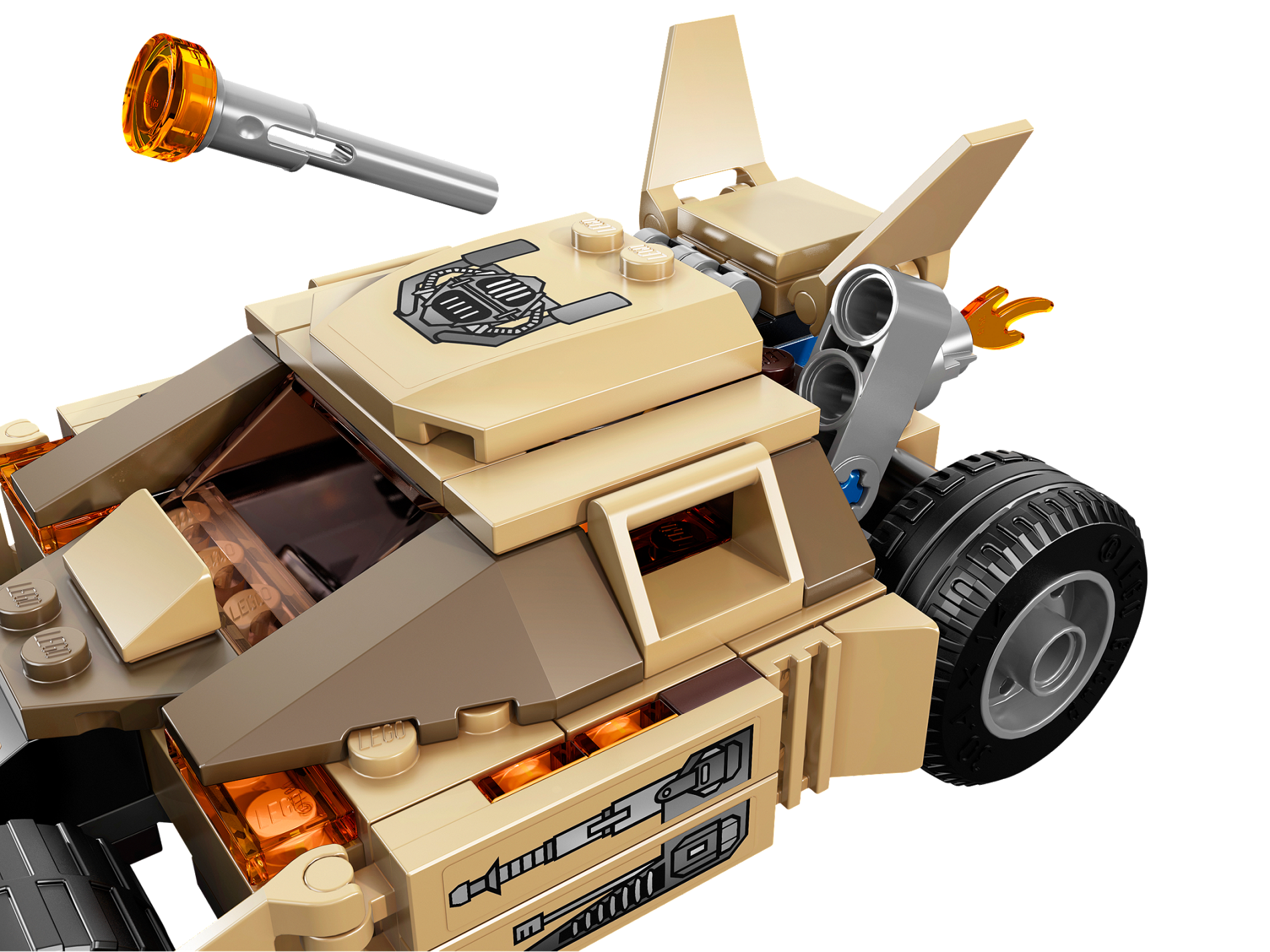 | 1 X Wedge 4 x 4 x 2/3 Triple Curved with Batman Tumbler Mechanical Pattern (Sticker) - Set 76001 | Tan |   |  |