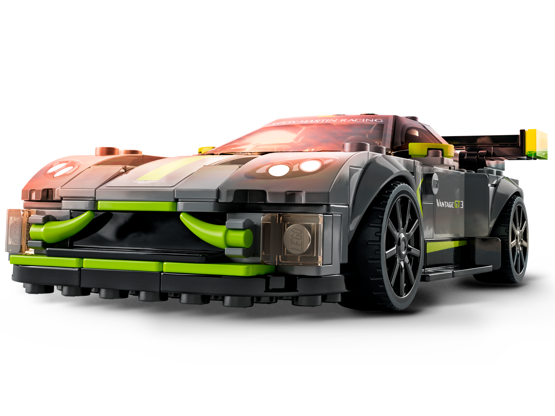 | 1 X Windscreen 6 x 6 x 1 1/3 with Black Window Frame Outline, Dark Bluish Gray Roof and Lime Stripe, 'ASTON MARTIN RACING' Pattern | Trans-Black |   |  |