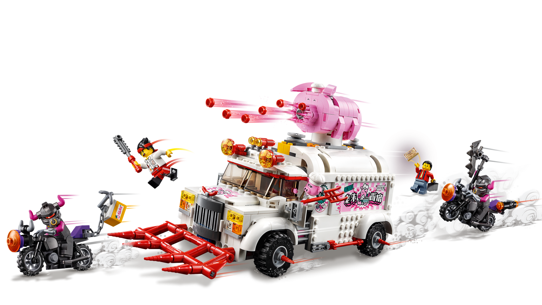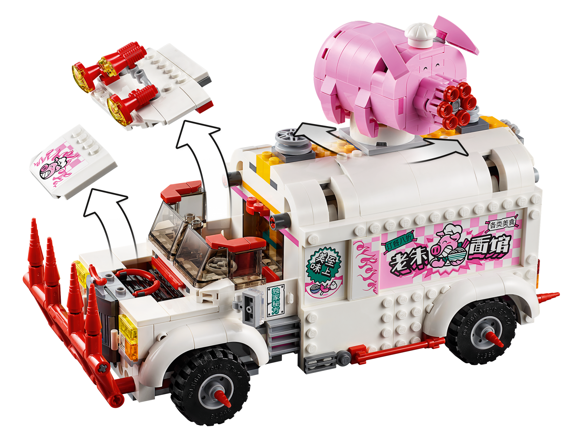 | 1 X Tile, Modified 6 x 12 with Studs on Edges with Pigsy and Chinese Logogram '老朱面馆' (Old Pig Noodle House) Pattern Model Left Side (Sticker) - Set 80009 | White |   |  |