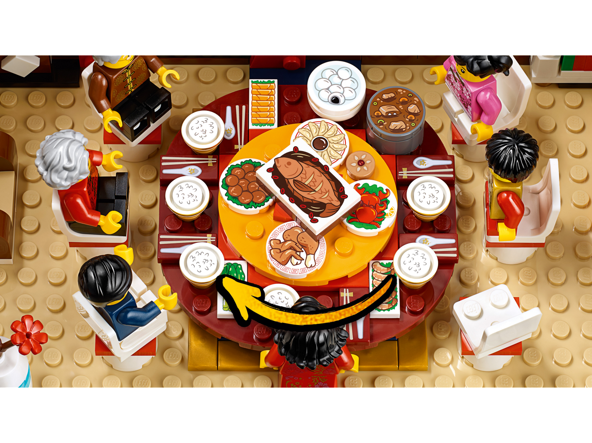| 6 X Tile 1 x 2 with Groove with Tan Chopsticks on Stand, White Chinese Soup Spoon with Gold Flower Pattern | Dark Red |   |  |