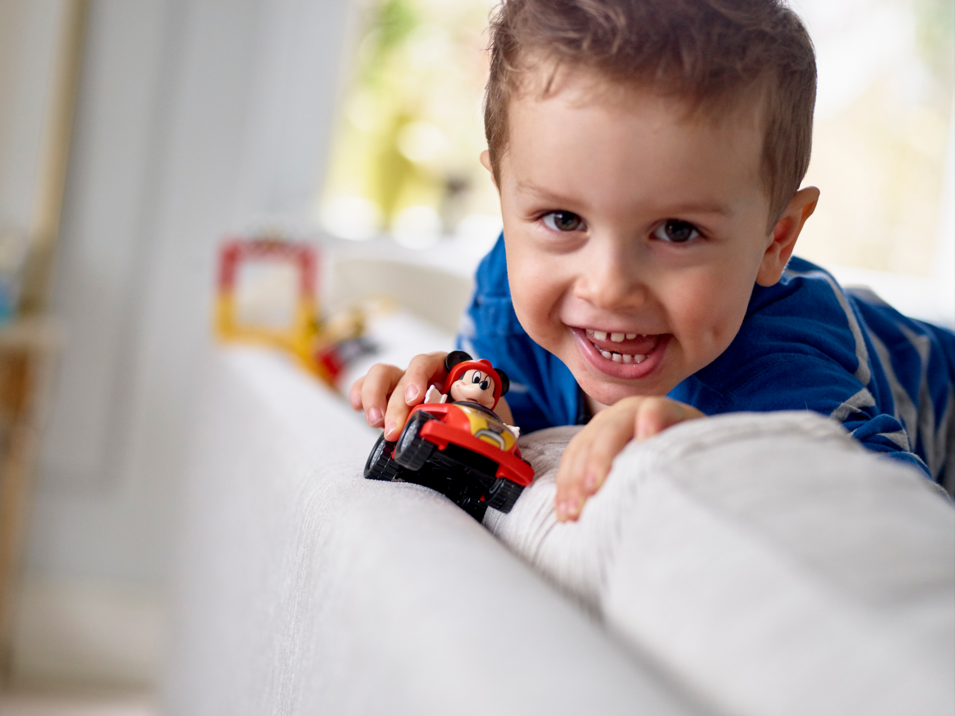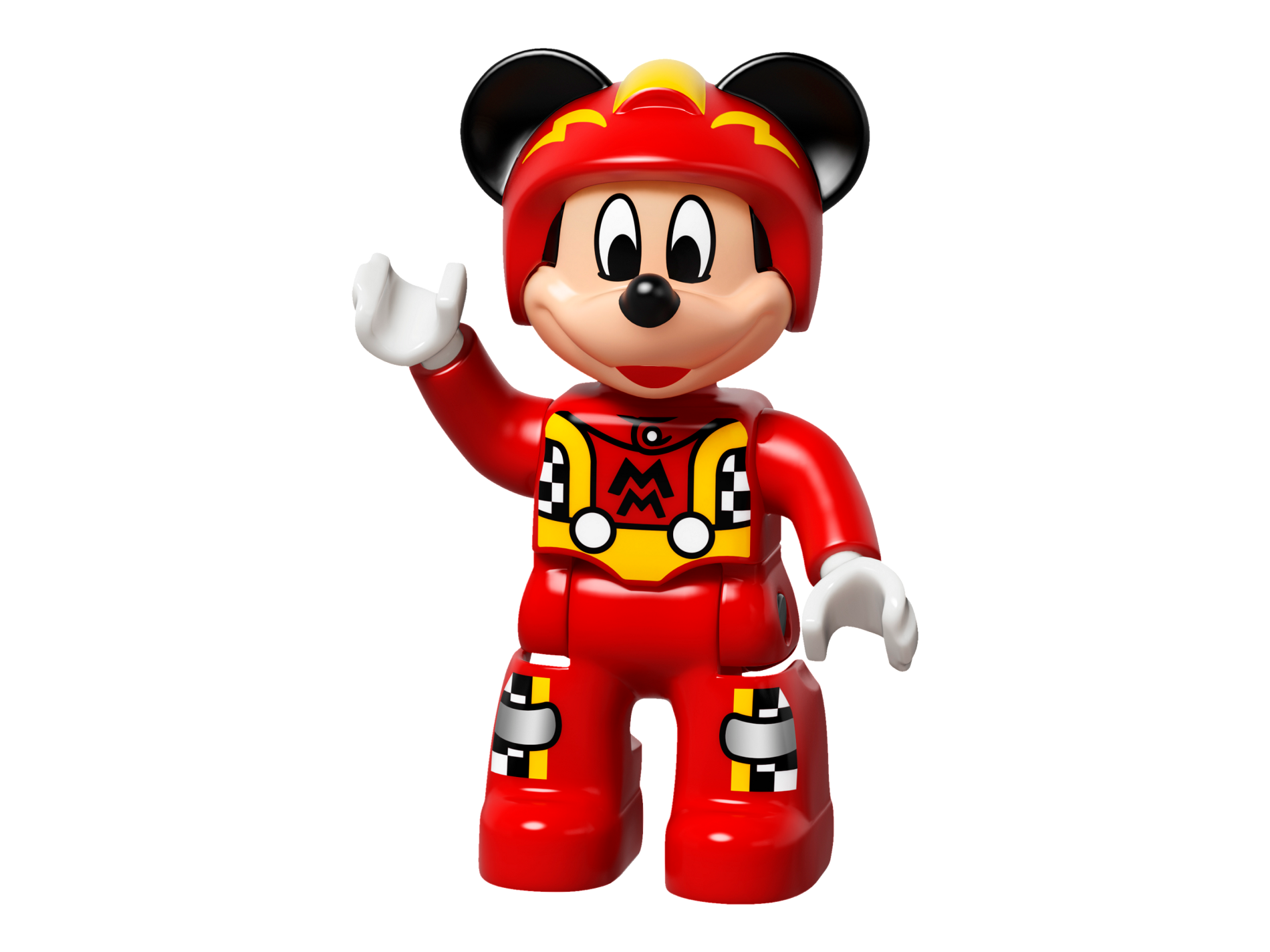 Duplo Figure Lego Ville, Mickey Mouse, Red Race Driver Jumpsuit, Helmet