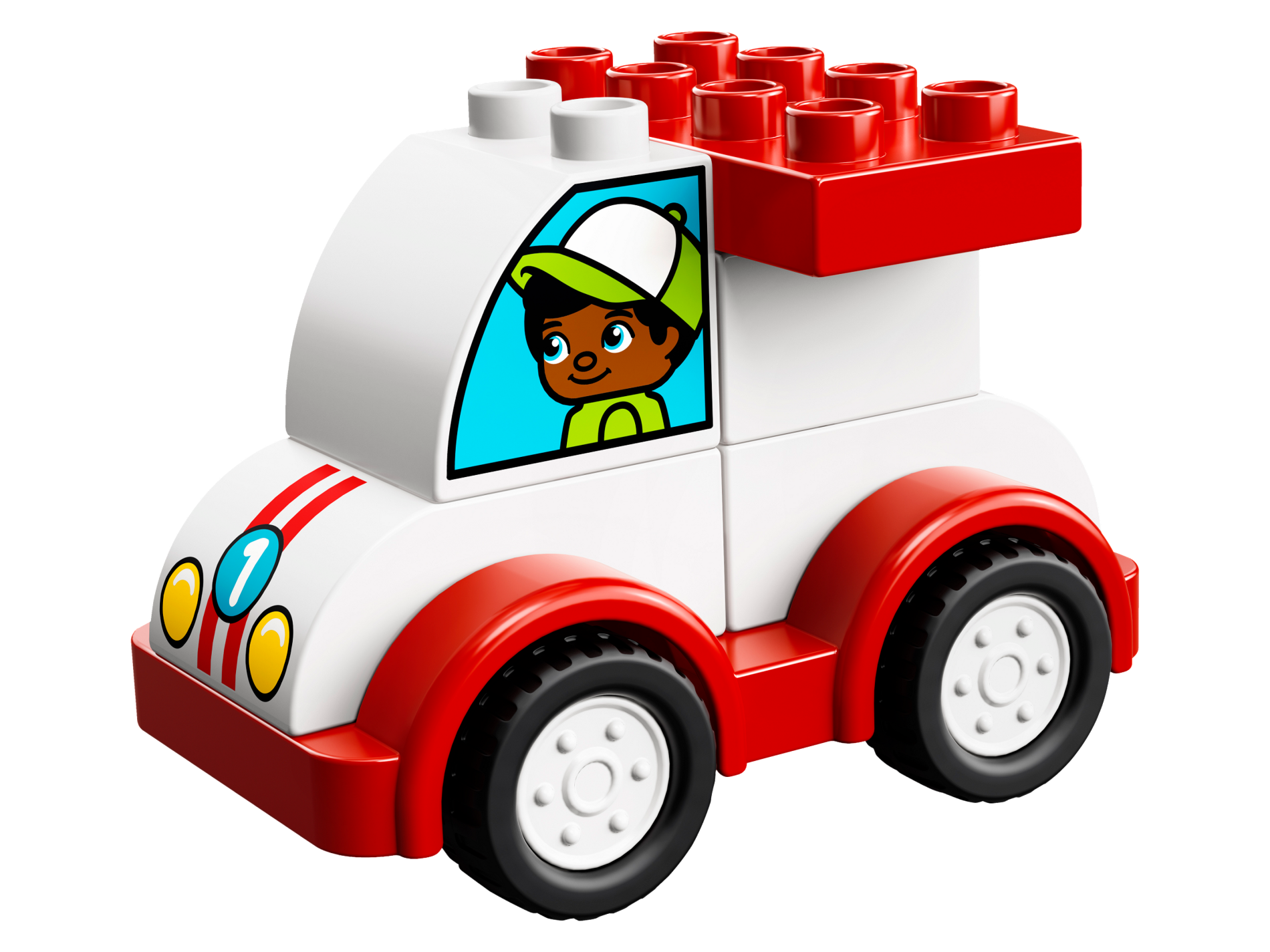Duplo, Brick 2 x 3 with Curved Top and Headlights, Racing Stripes, and Number '1' Pattern