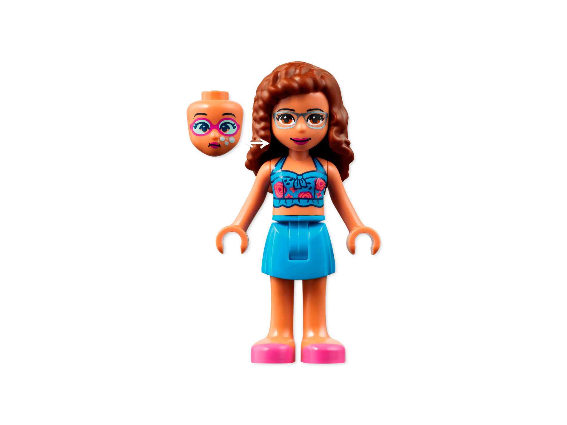 | 1 X Mini Doll, Head Friends with Black Eyebrows, Magenta Goggles and Lips, White Bubbles (Underwater) Pattern | Flesh |   |  |