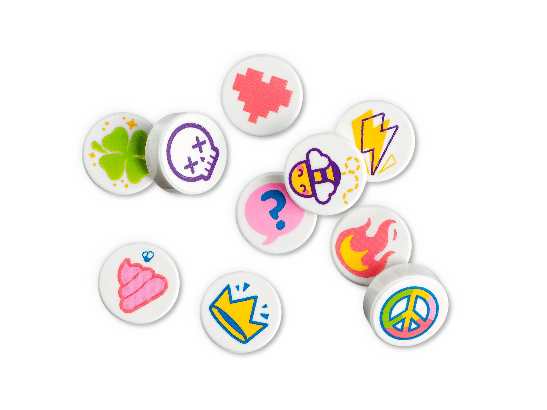 Tile, Round 1 x 1 with Bright Pink Exclamation Mark on Blue Speech Bubble Pattern