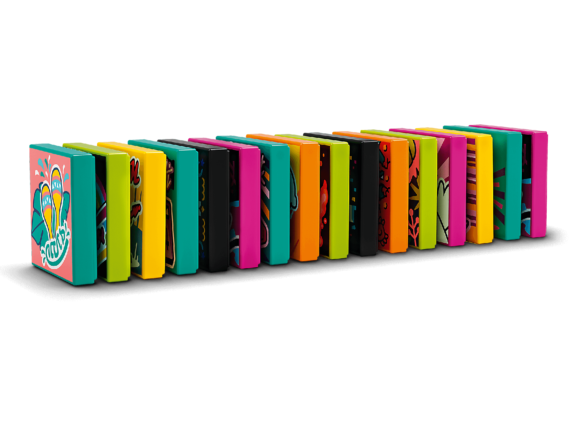 | 14 X Tile 2 x 2 with Groove with BeatBit Album Cover - Black Minifigure in Yellow and Purple Splotches Pattern | Black |   |  |
