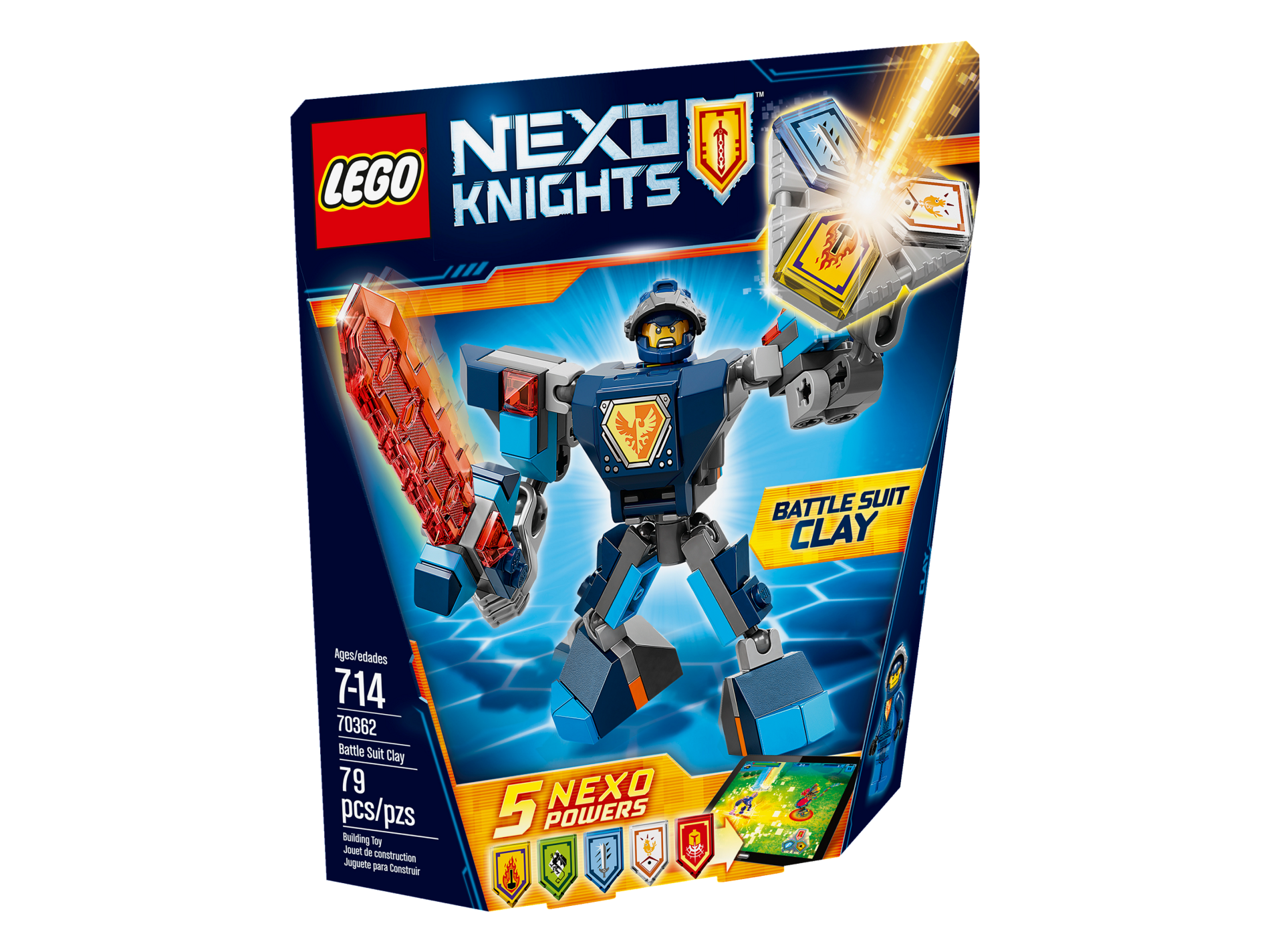 Tile, Modified 2 x 3 Pentagonal with Nexo Power Shield Pattern - Titanium Sword