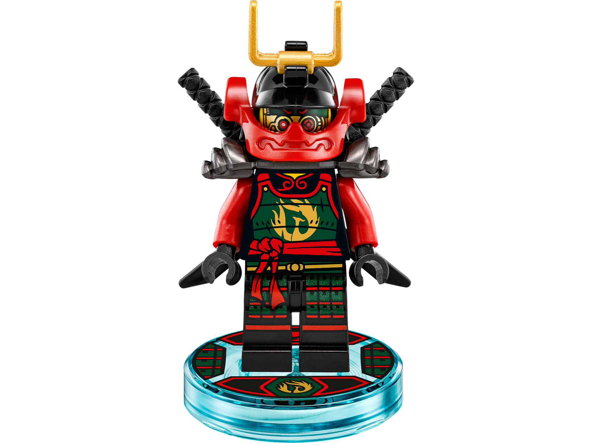 Dimensions Toy Tag 4 x 4 x 2/3 with 2 Studs for Nya #34 with Gold Nya Sybmol and Red Ninja Symbol Pattern