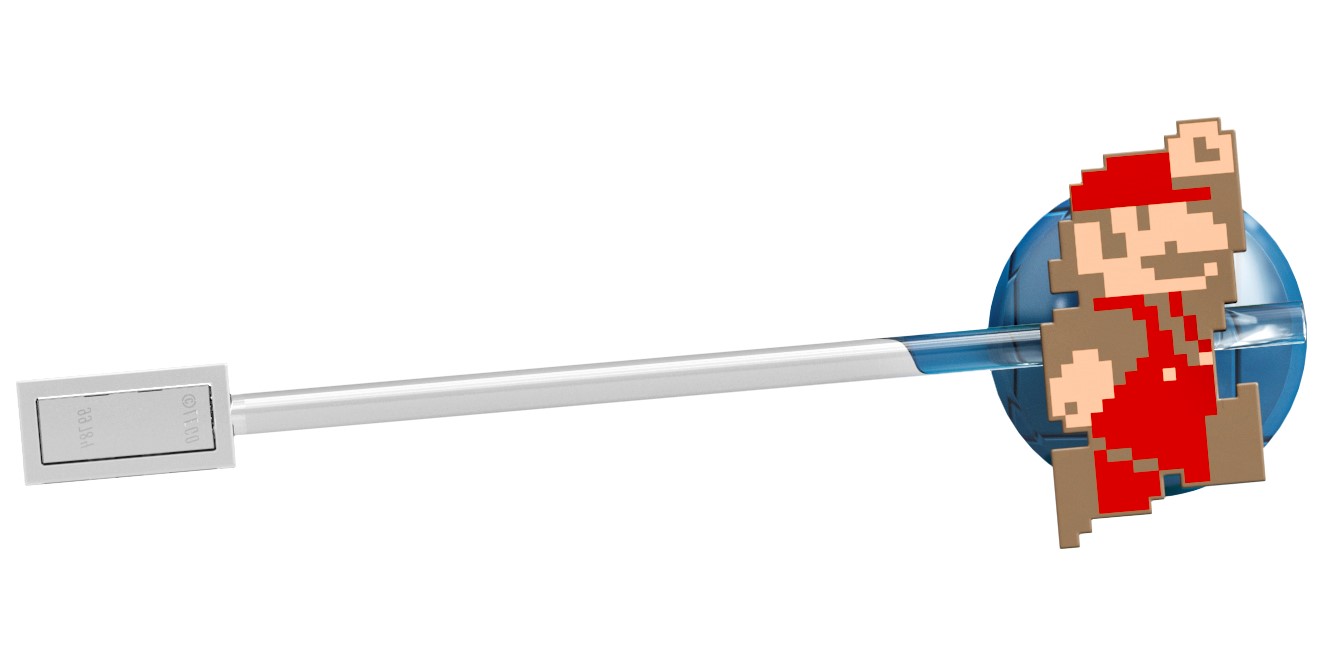 | 1 X Tile, Modified 1 x 1 Half Circle Extended (Stadium) with Pixelated Koopa Troopa Pattern | Dark Red |   |  |