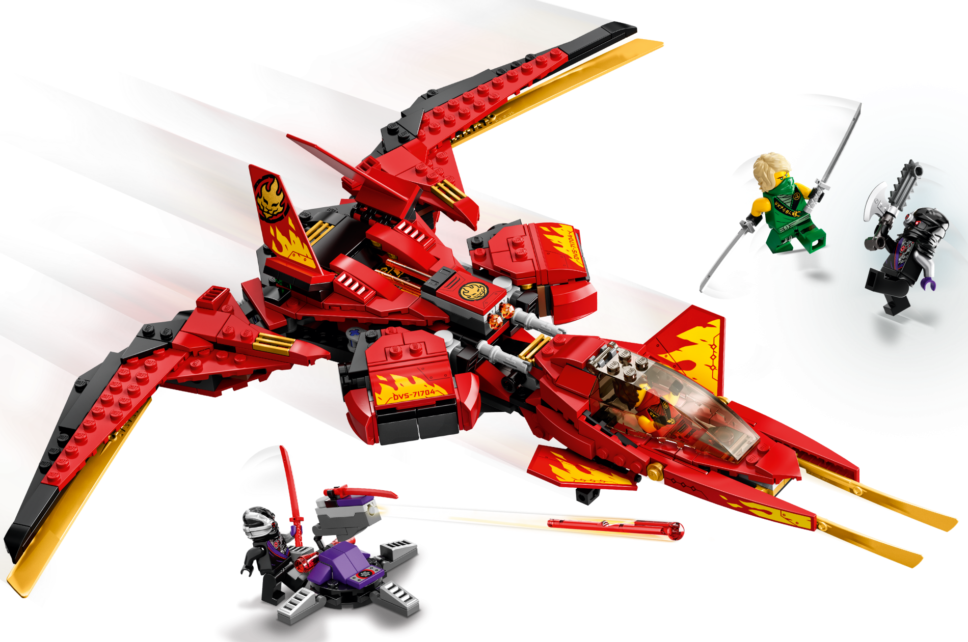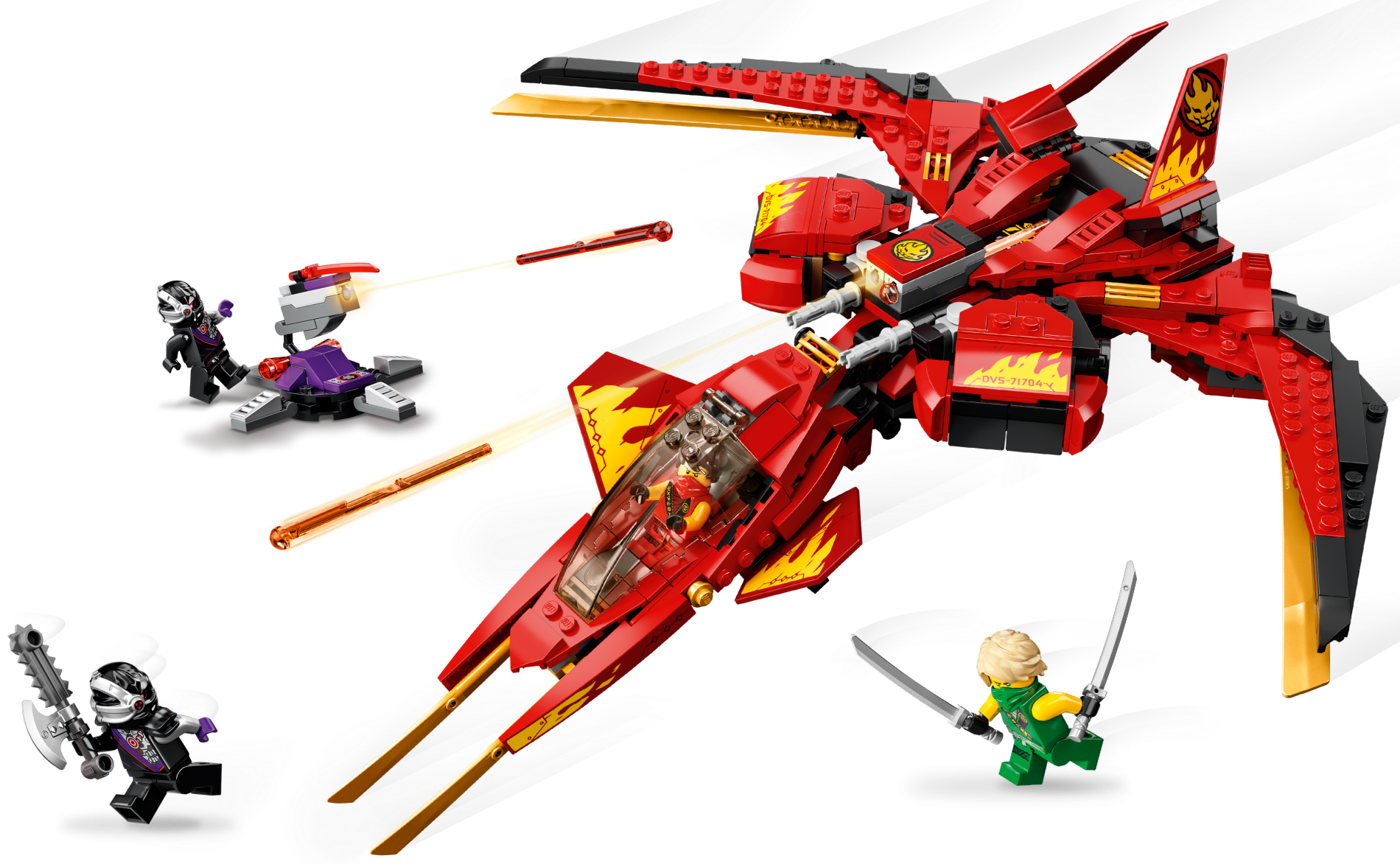 | 1 X Slope, Curved 2 x 4 x 2/3 with Bottom Tubes with 'DVS-71704', Yellow Flames and Black Line and Circles Pattern Model Left Side (Sticker) - Set 71704 | Red |   |  |
